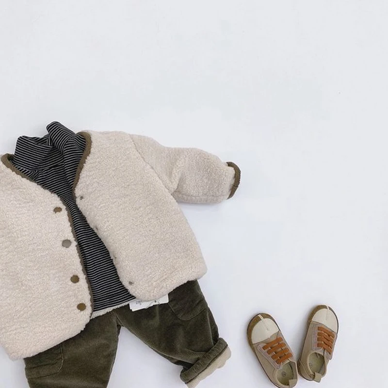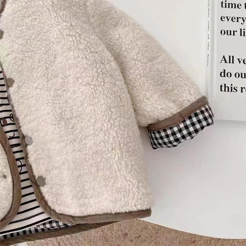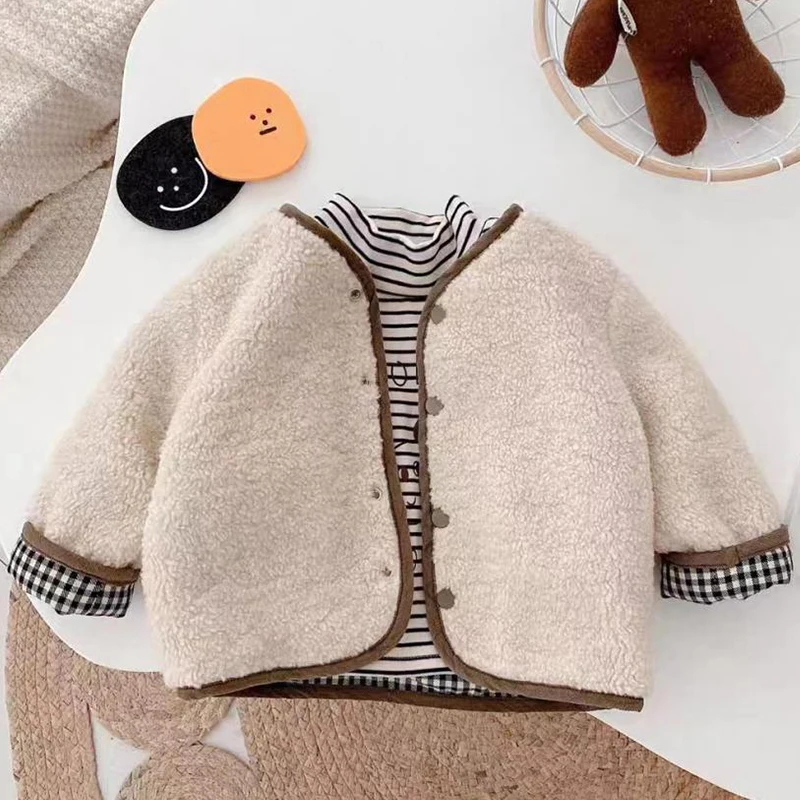 0-6 Years Children's Autumn Winter Warm Double-Side Wear Jacket Girls Fashion Plaid Plush Coat Boys Thicken Outerwear