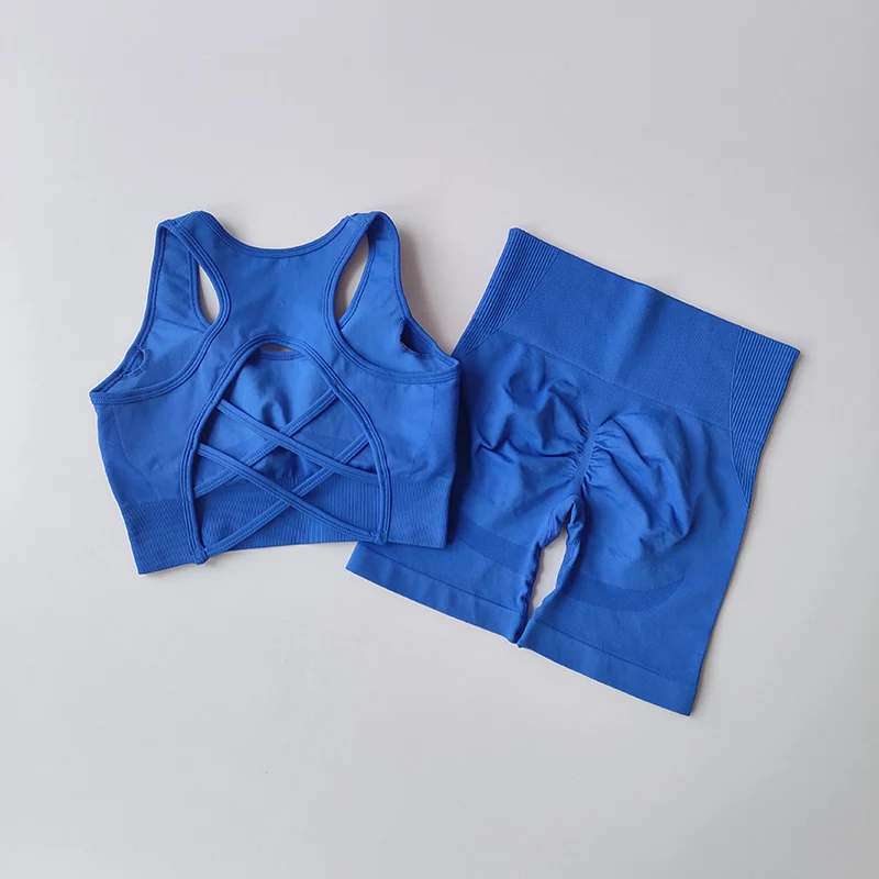 2 PCS Women's Seamless Yoga Set Sexy Sport Bra High Waist Sports Shorts Gym Fitness Sleeveless Workout Suit Sporstwear