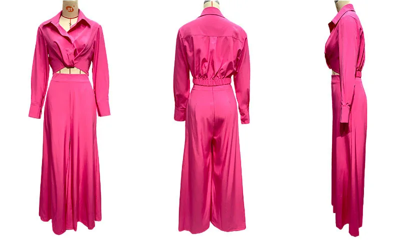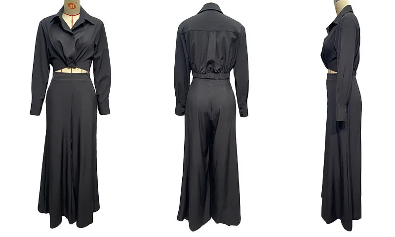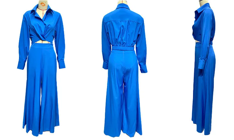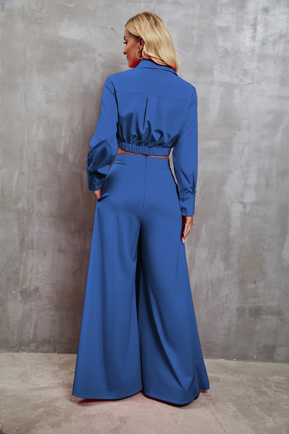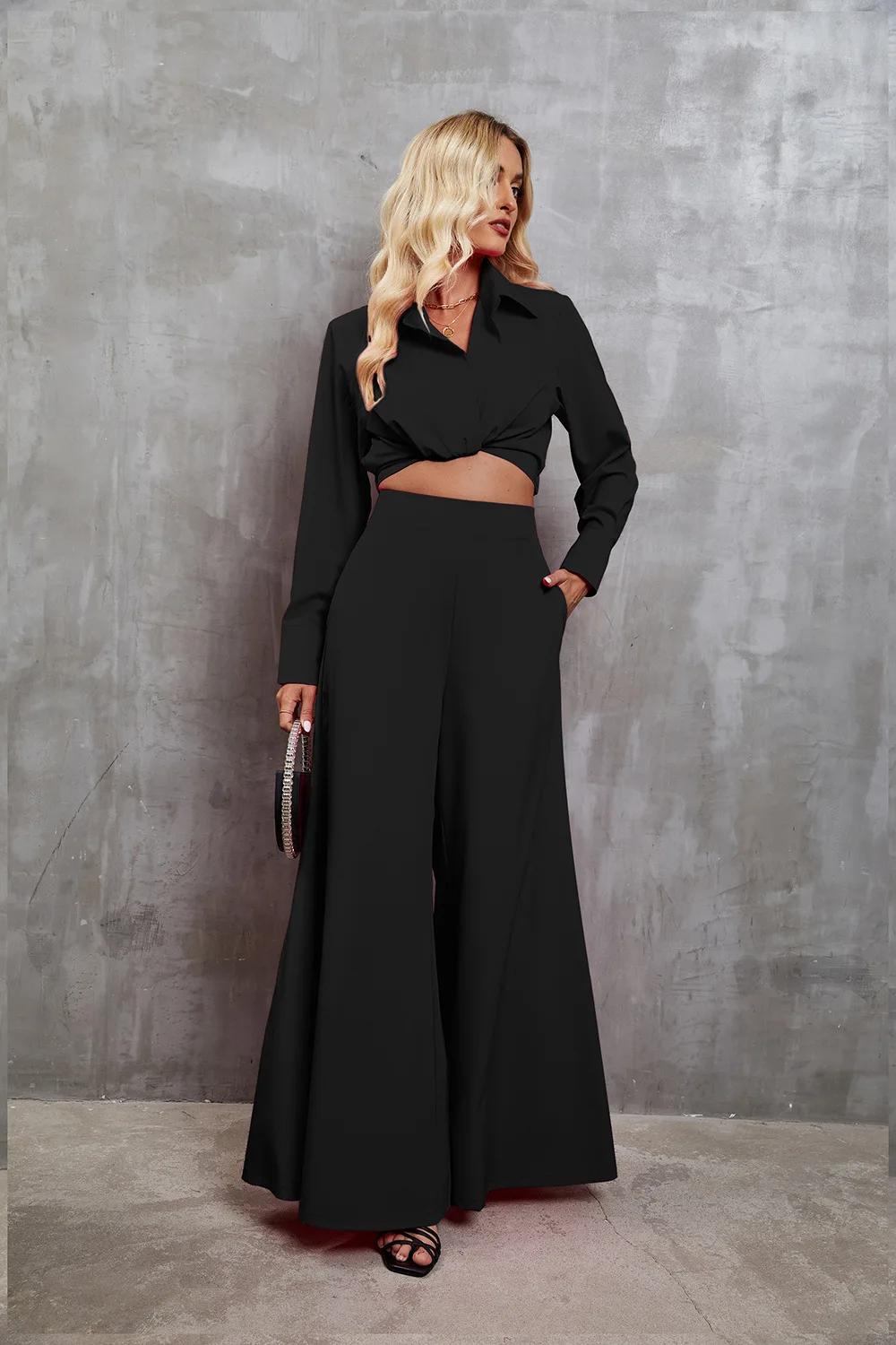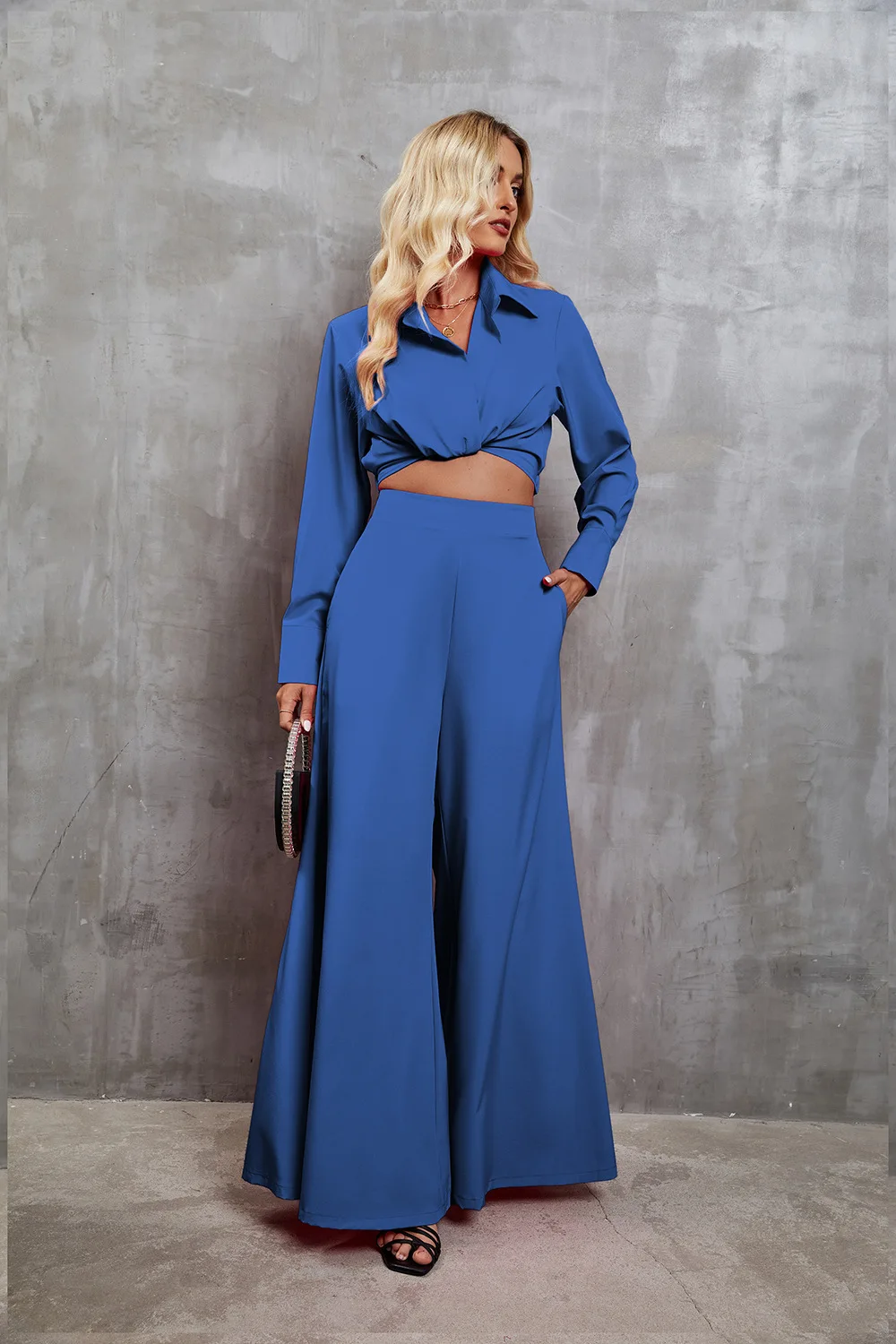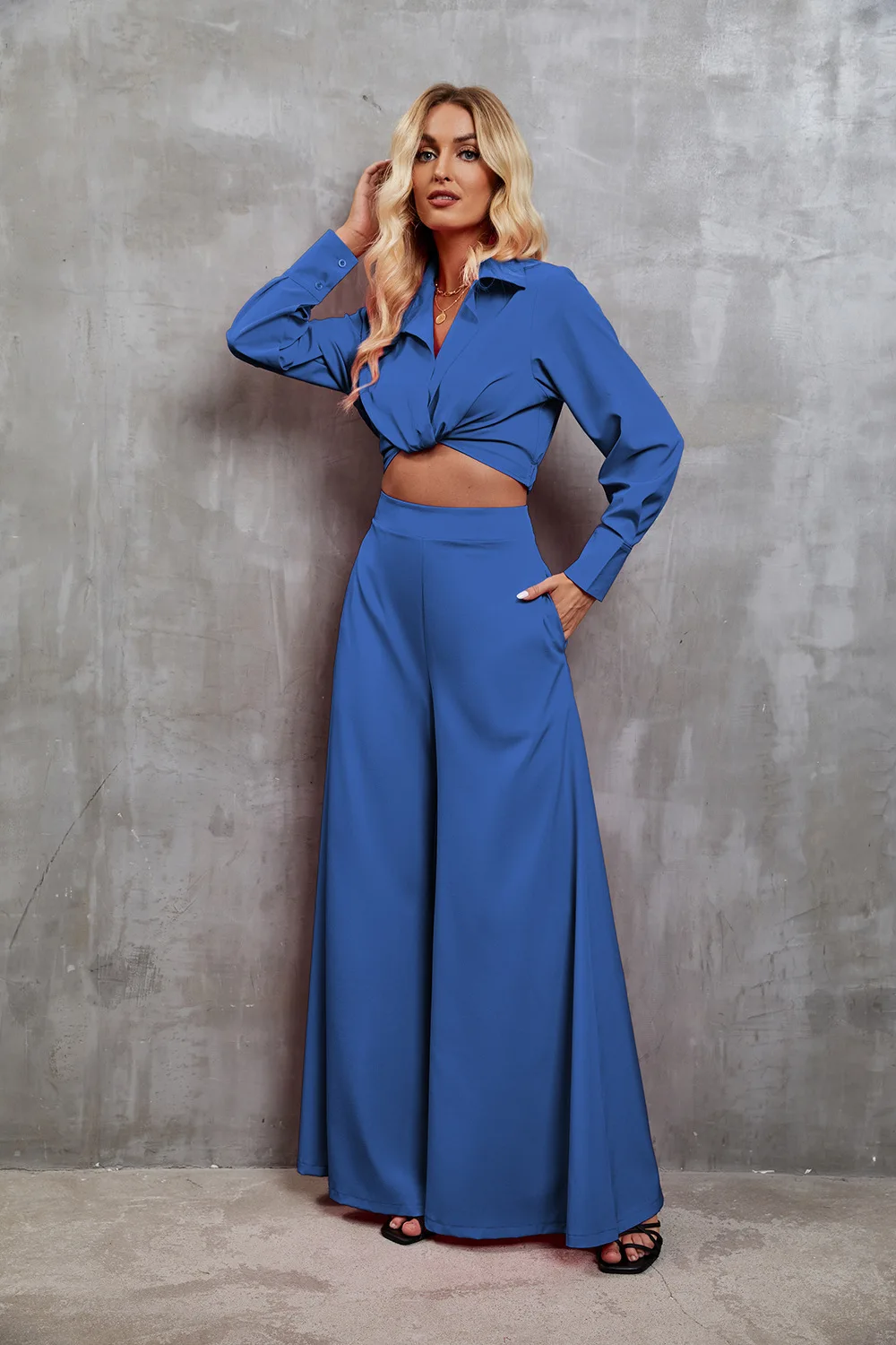 2024 New Women Set Solid Color Long Wide Leg Pants Women's Two-piece Set Fashion Casual Long Sleeves Shirt Jacket Suit Autumn