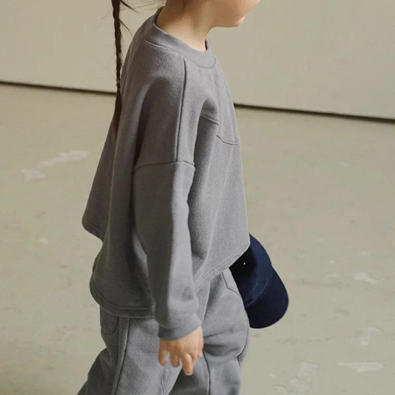 2025 Winter New Children Plus Velvet Thick Clothes Set Solid Boys Girls Fleece Sweatshirt + Pants 2pcs Suit Kids Warm Outfits