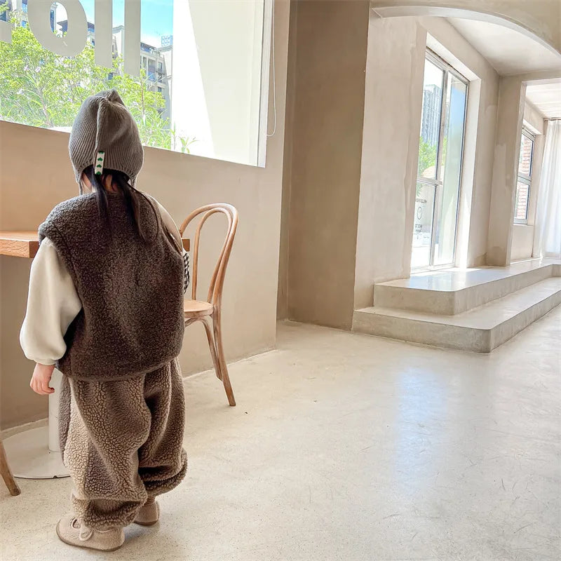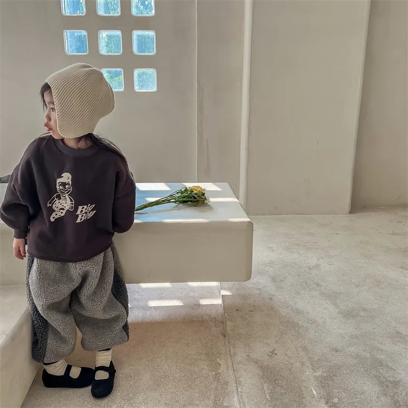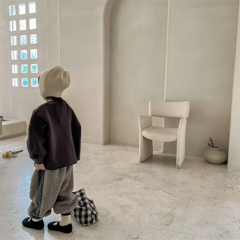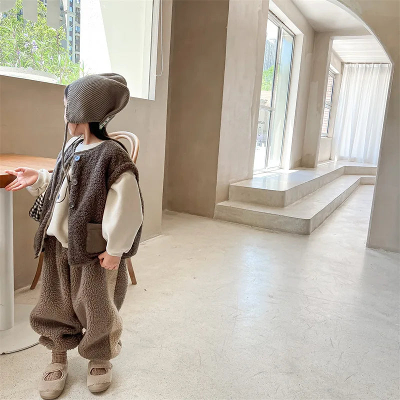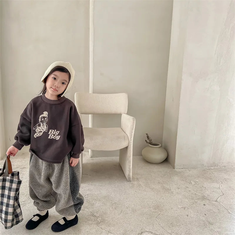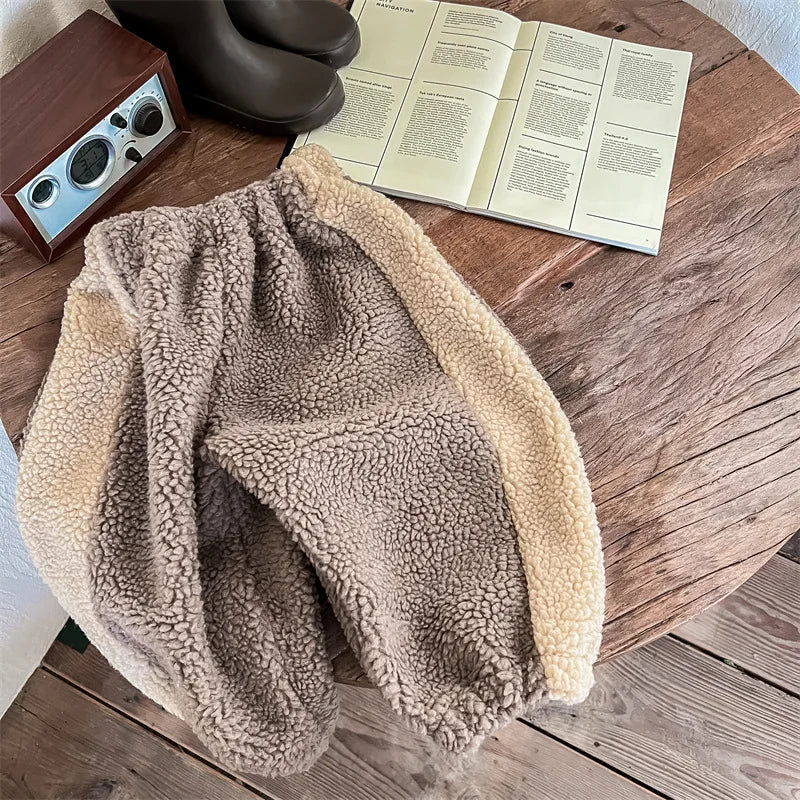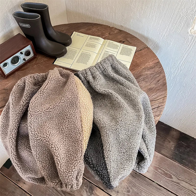 2025 Winter New Children Warm Trousers Baby Loose Lamb Fleece Pants Toddler Girls Casual Pants Solid Baby Boys Harem Pants