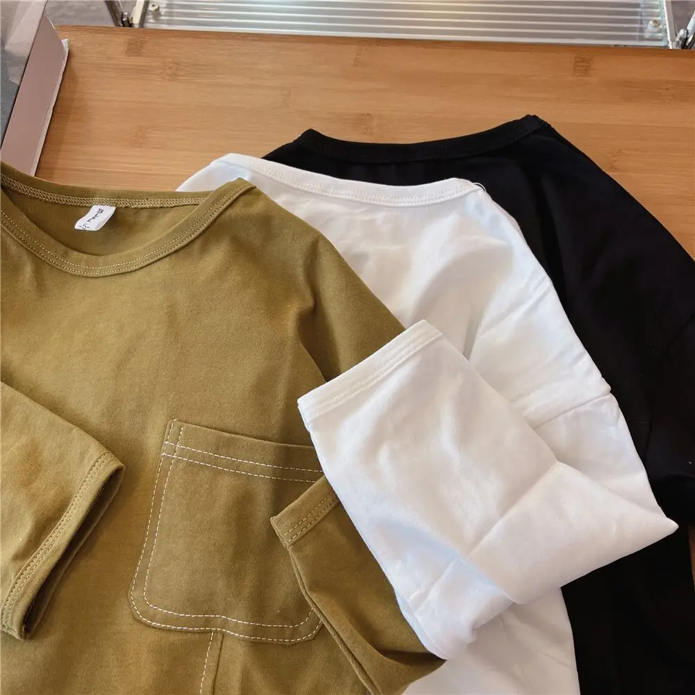 Autumn Boys Long-sleeved T-shirt Spring and Autumn 2023 New Children's Solid Color Irregular Bottoming Shirt Baby Inner Tops