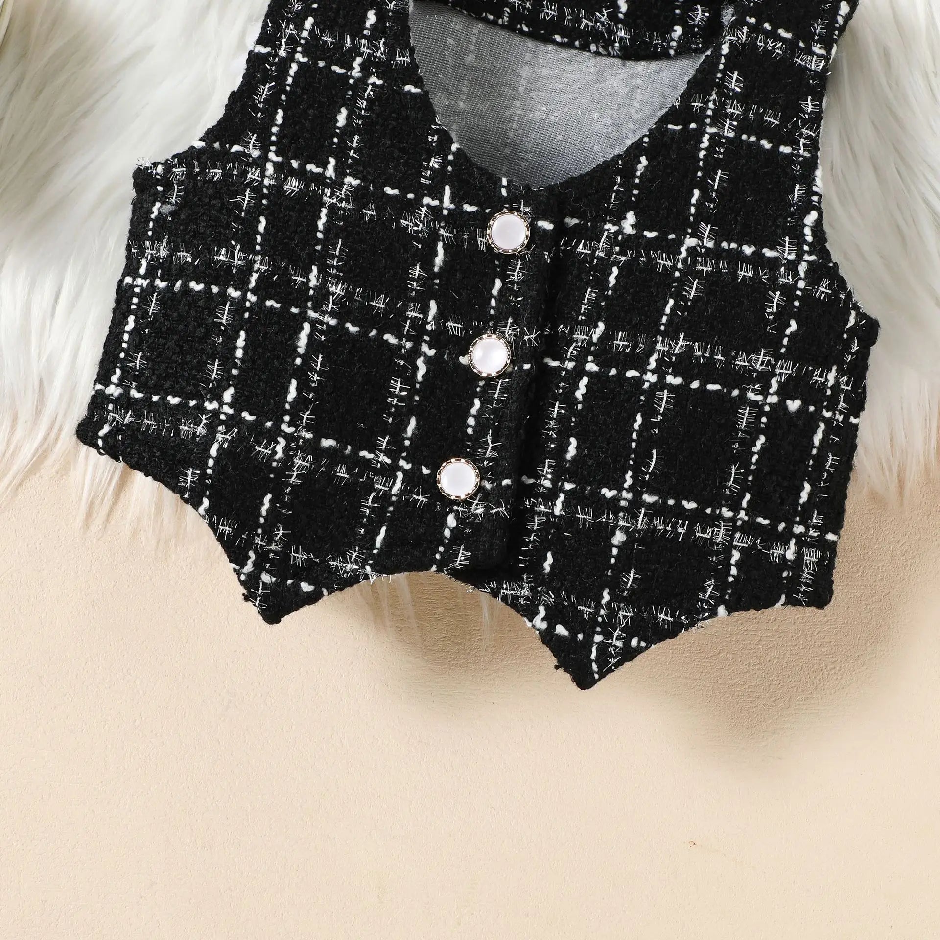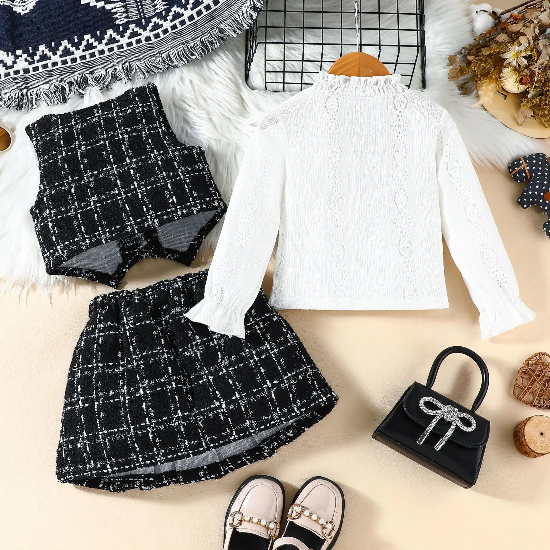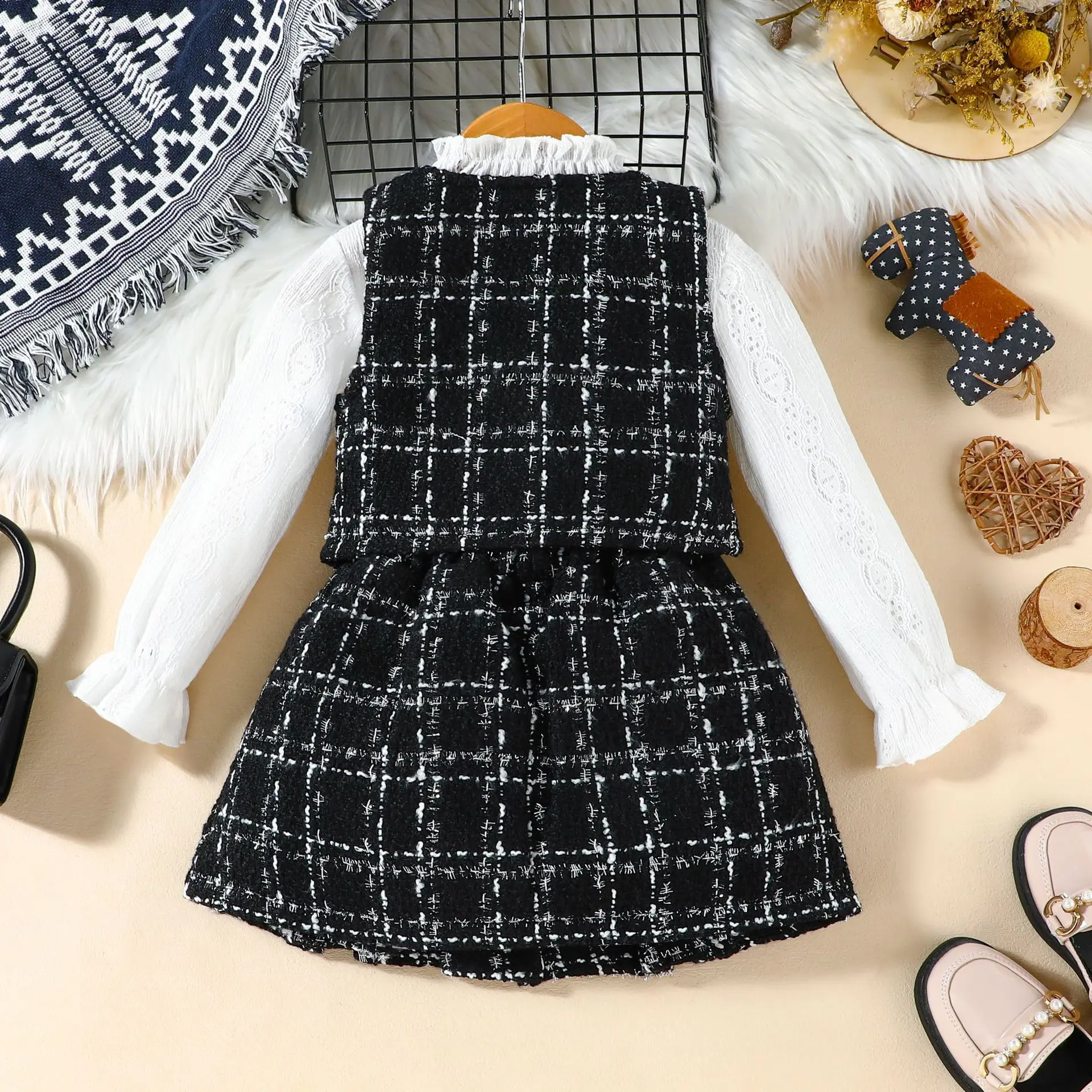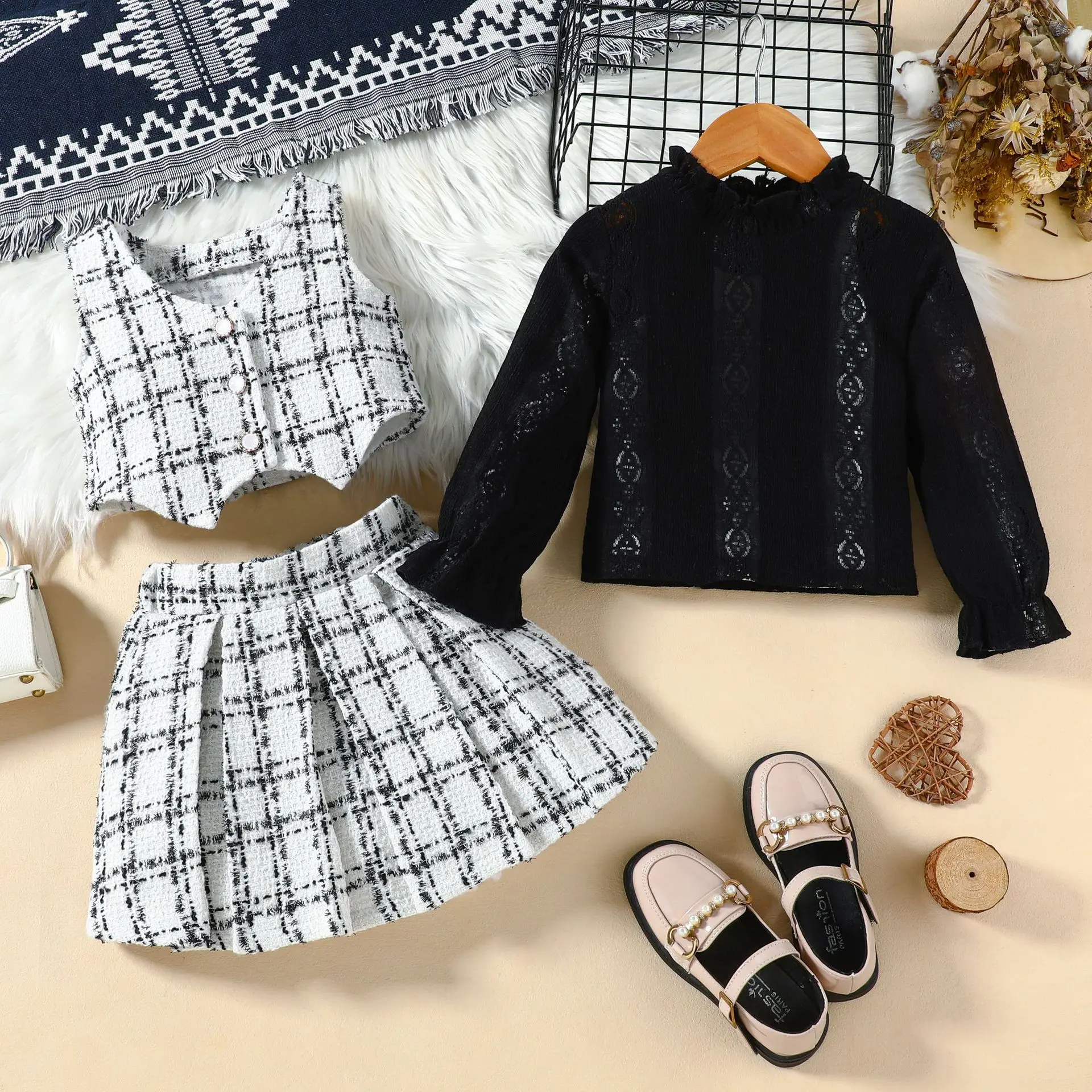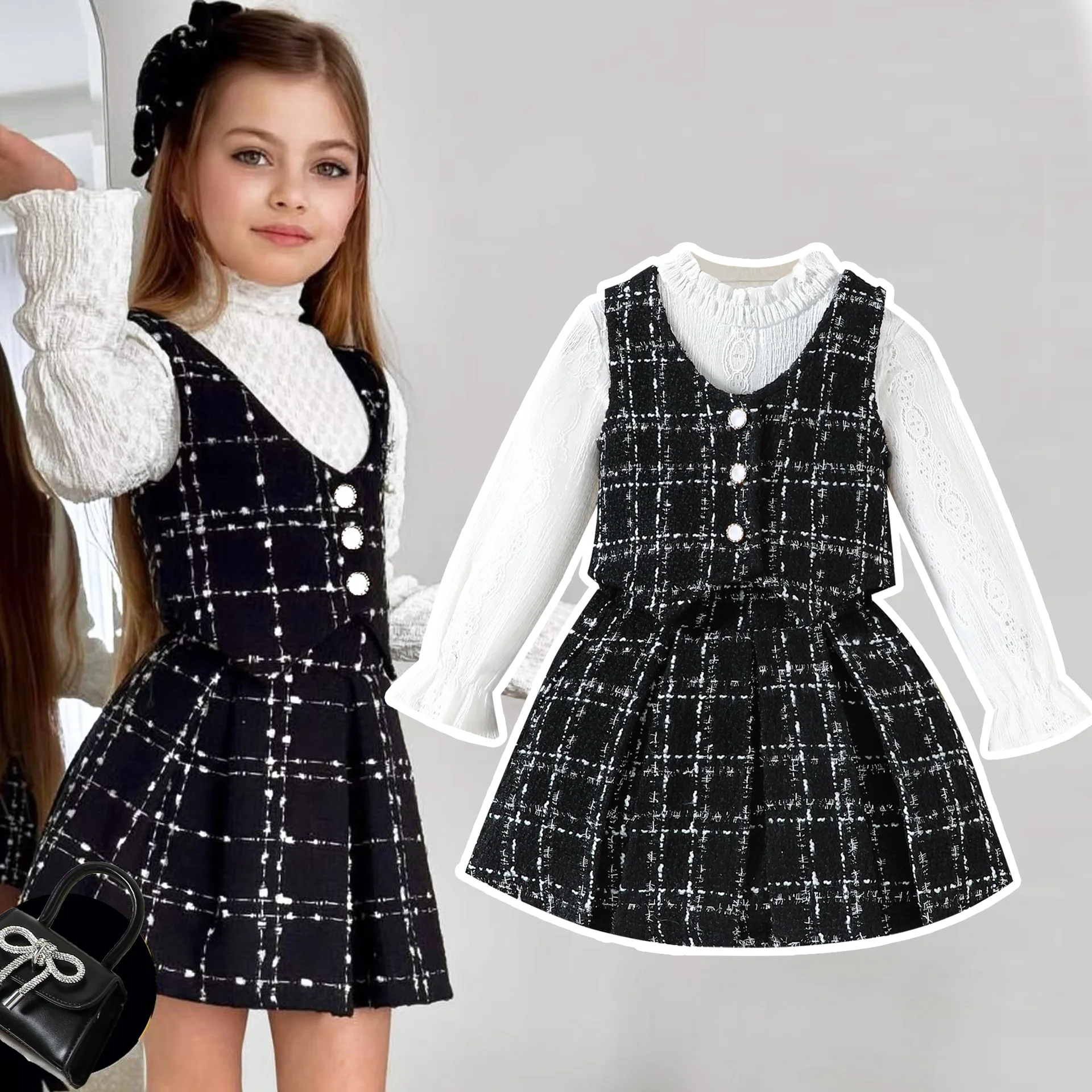 Baby Girl Spring and Autumn High Neck Long sleeved Dress 3 Pcs Set Vest+Base Coat+Short Skirt Children Clothing Age For 2-7 Year
