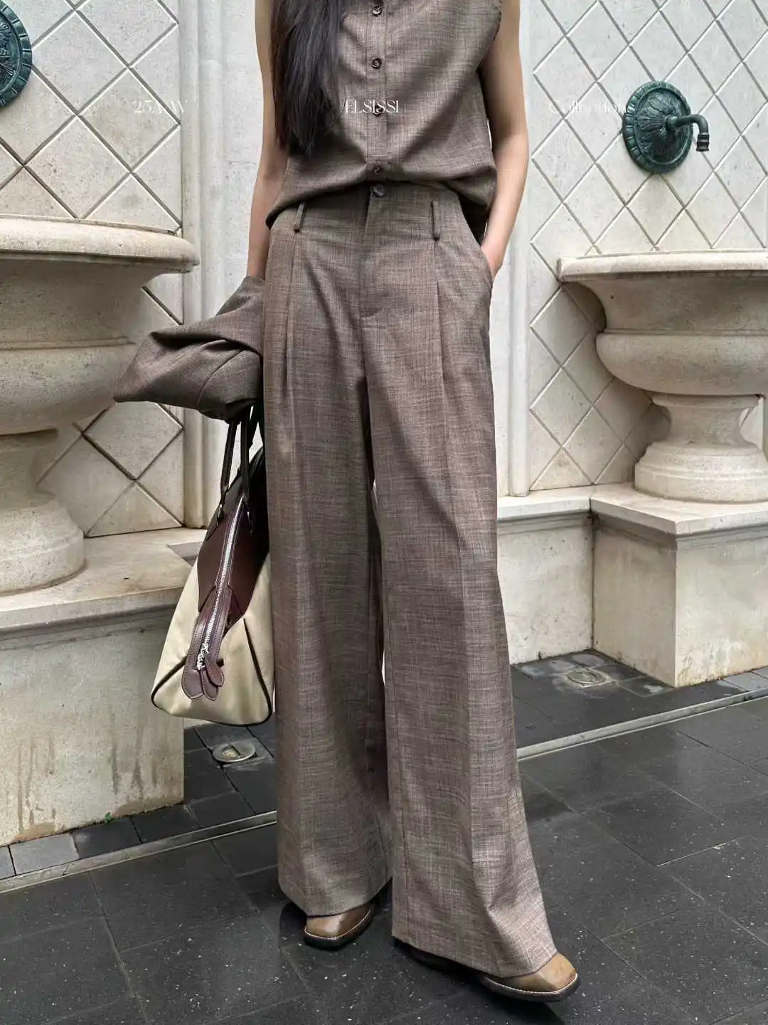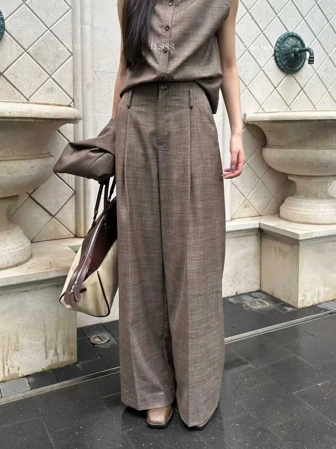 BJTZ Women's 3 Piece Blazer Vest Pants Set Solid Color V Neck Single Breasted High Waist Wide Leg Casual Elegant Spring Autumn