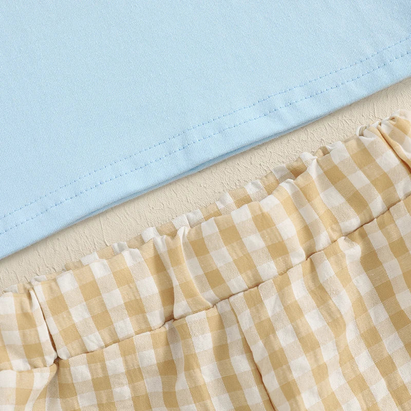 Boys 2-Piece Outfit Set with Embroidered Baseball Tee and Plaid Shorts Elastic Waistband Short Sleeve Top