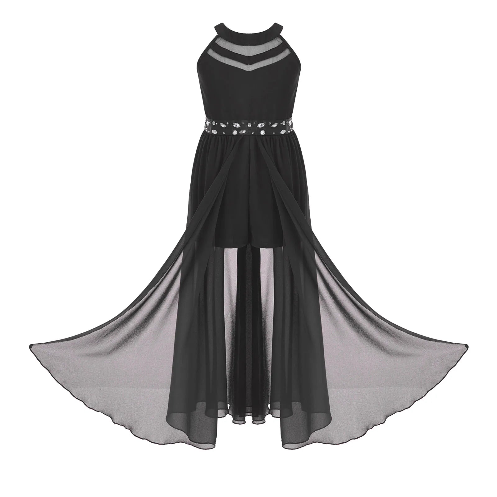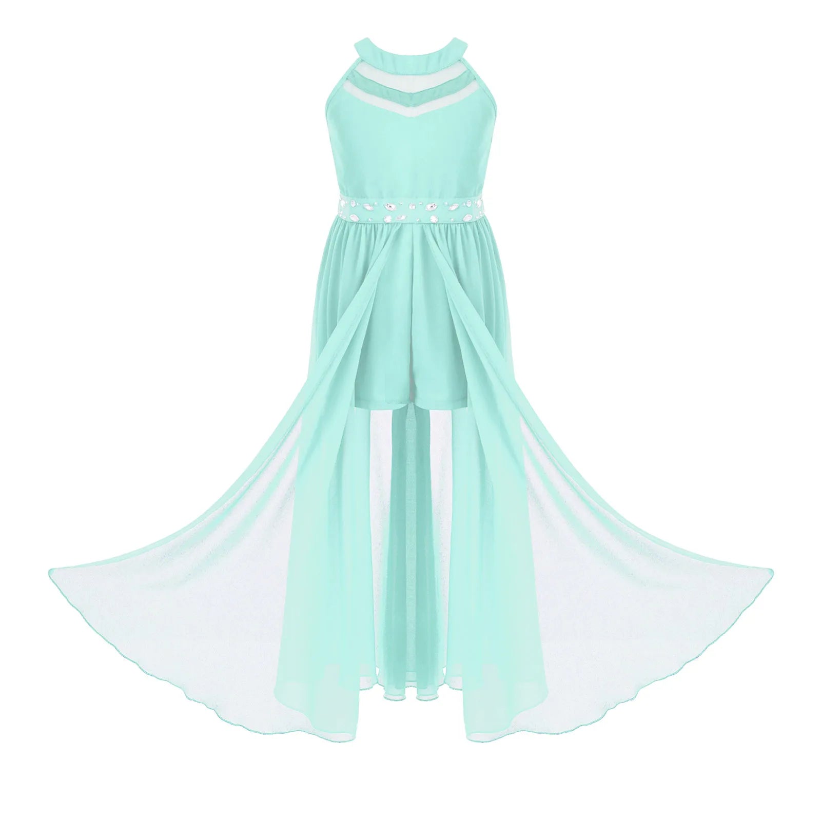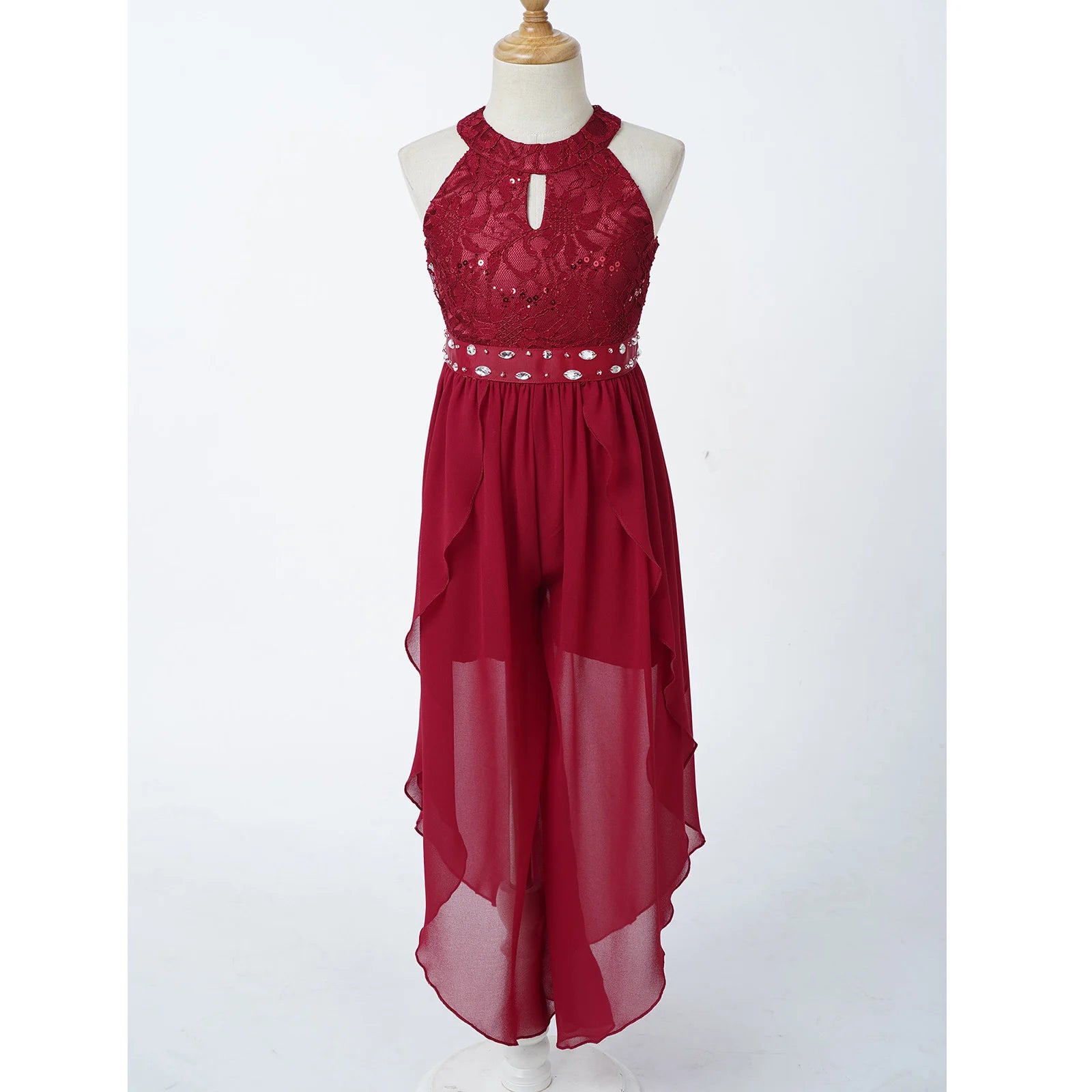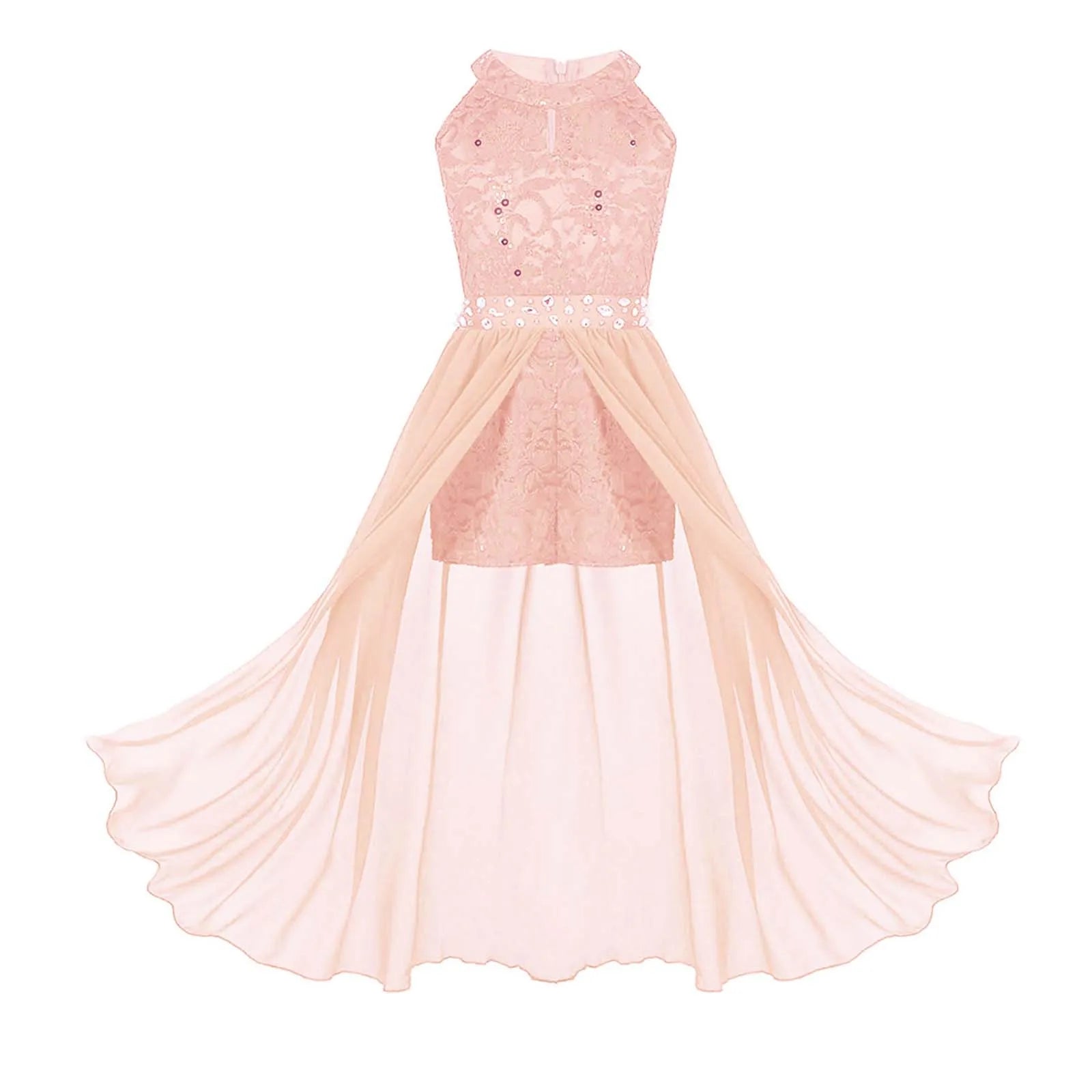 Children's Girls Maxi Romper Dress Sleeveless Floral Lace Rhinestone vestidos Kids Performance Dance Dress Girls Summer Dress