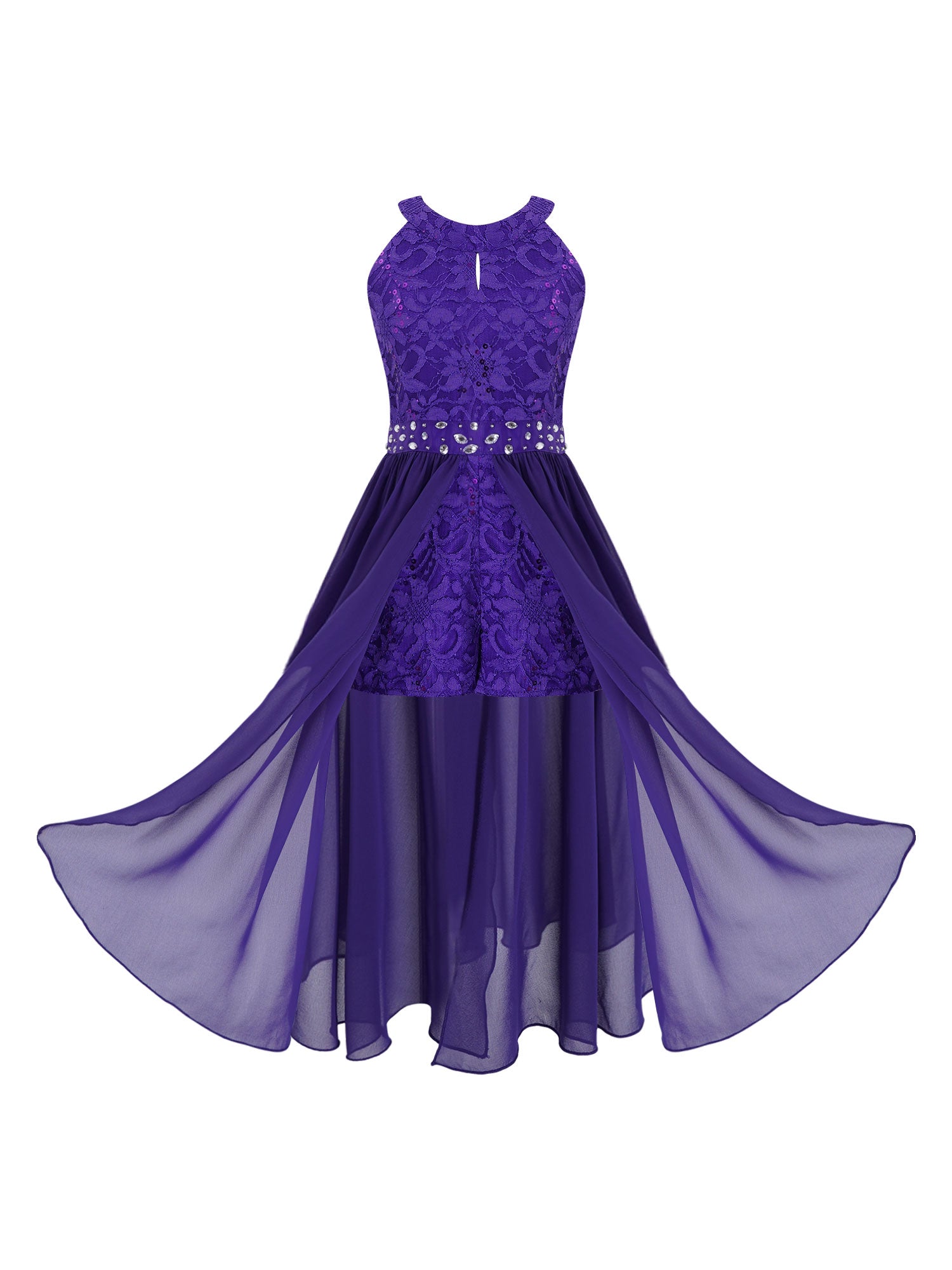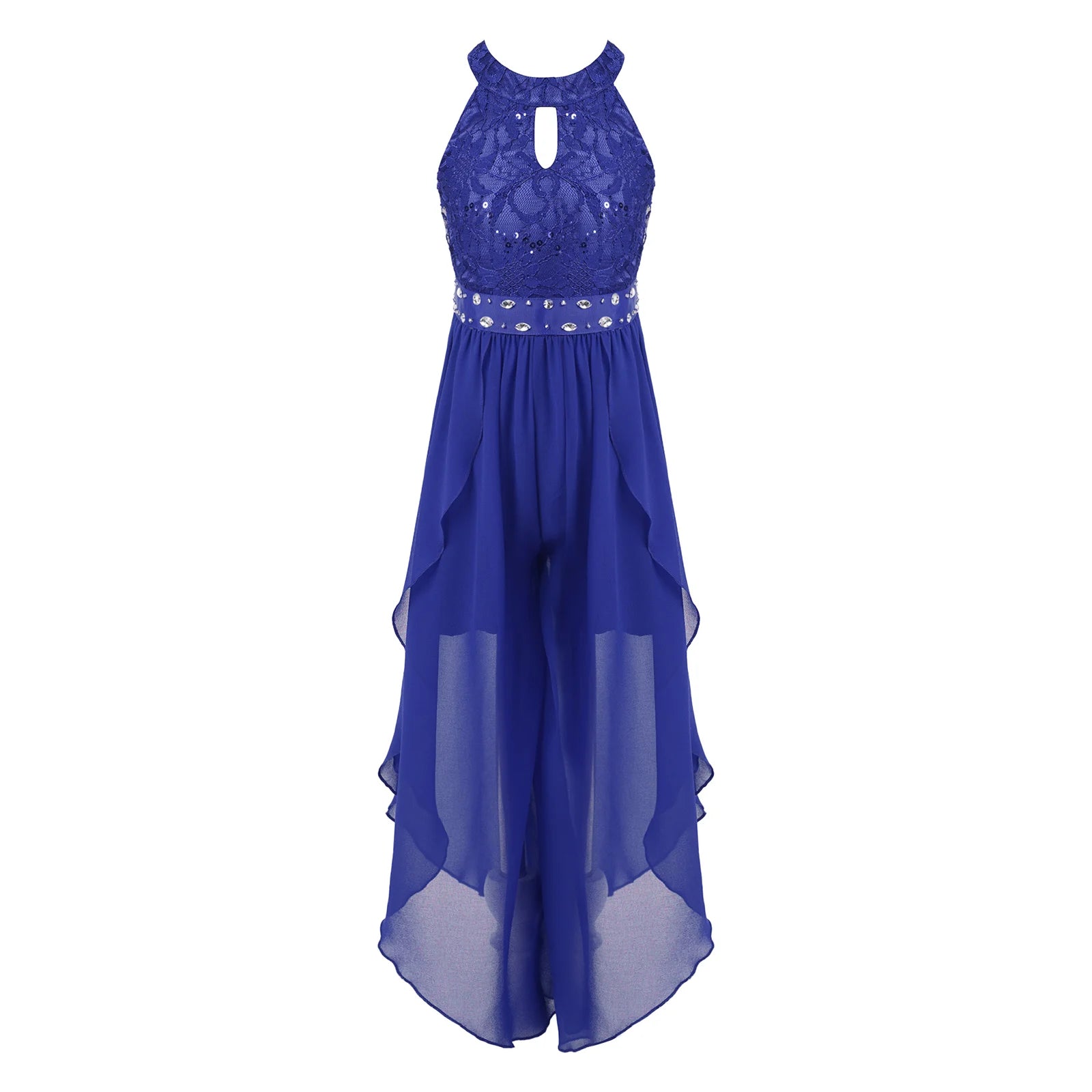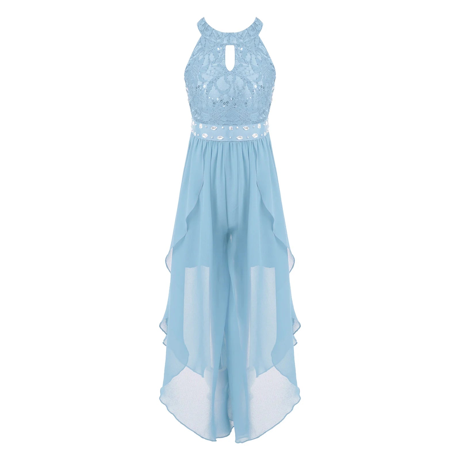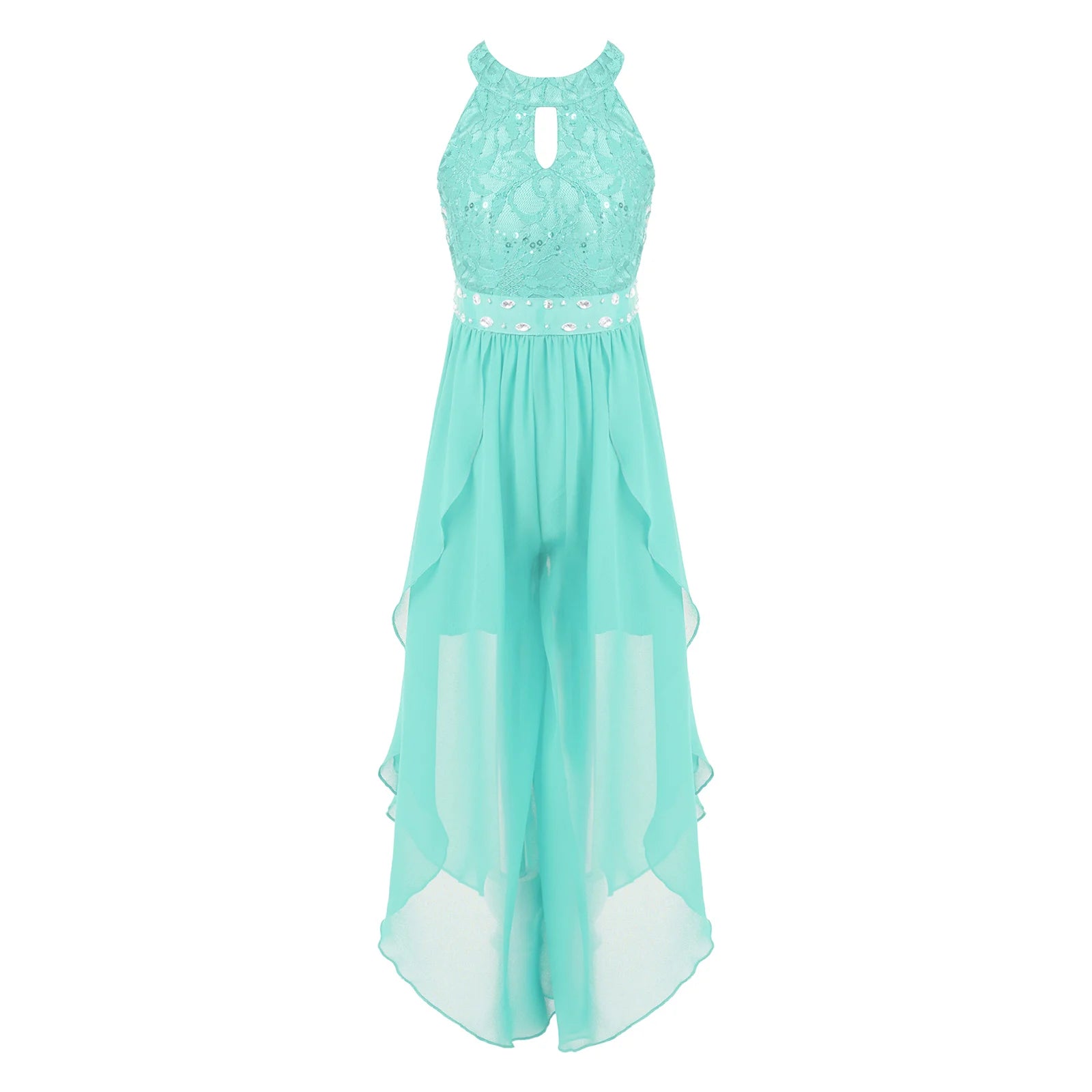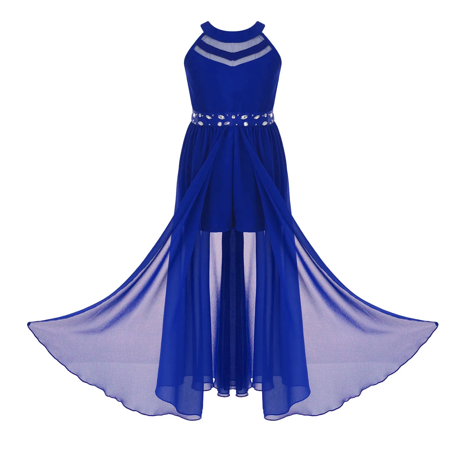 Children's Girls Maxi Romper Dress Sleeveless Floral Lace Rhinestone vestidos Kids Performance Dance Dress Girls Summer Dress