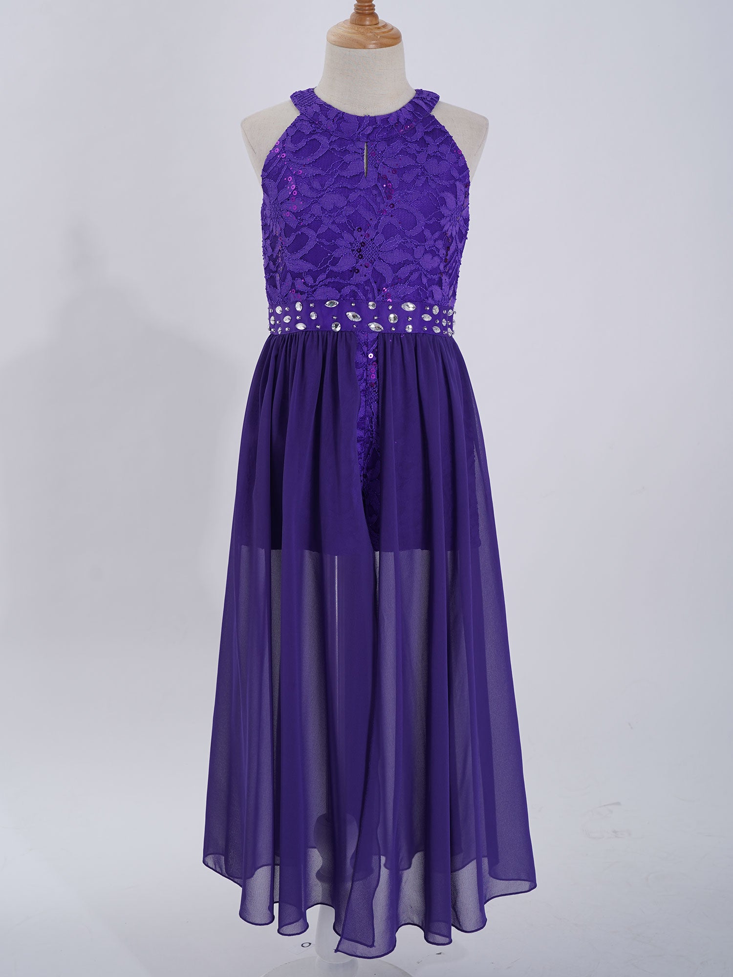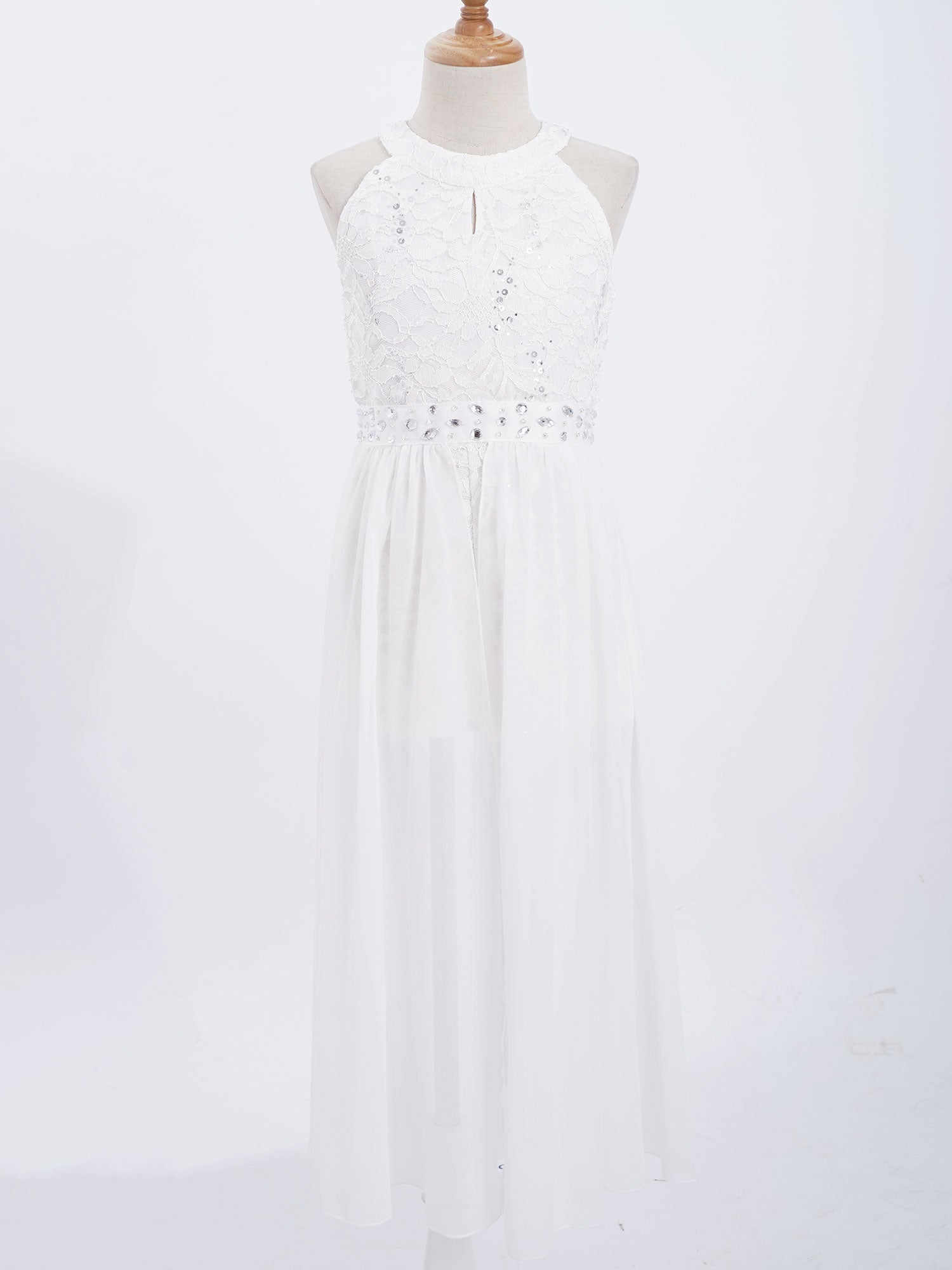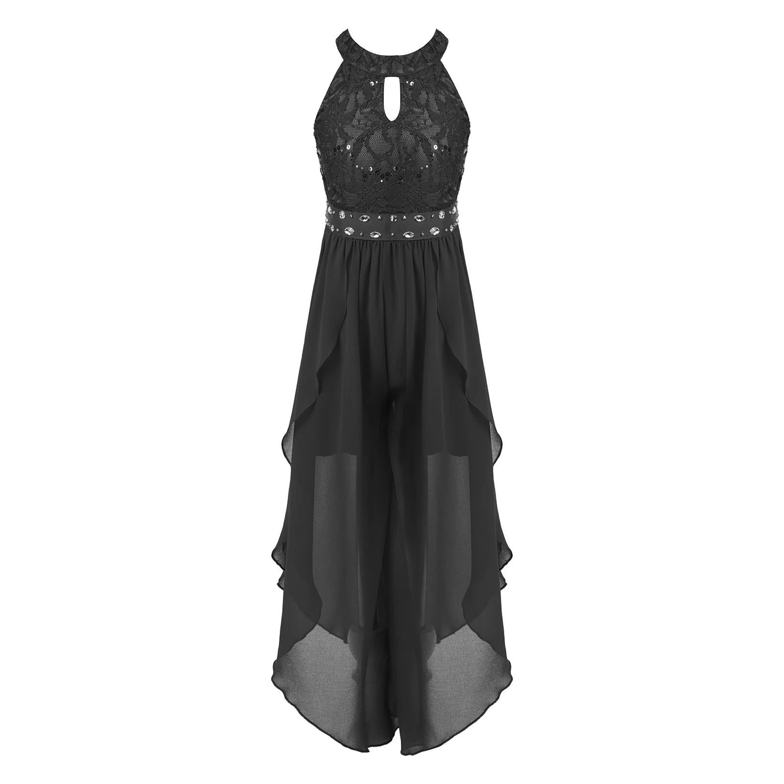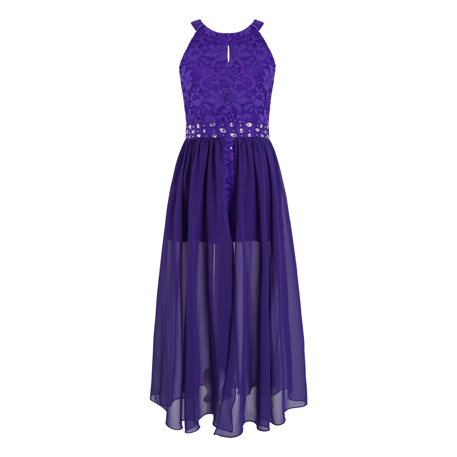 Children's Girls Maxi Romper Dress Sleeveless Floral Lace Rhinestone vestidos Kids Performance Dance Dress Girls Summer Dress