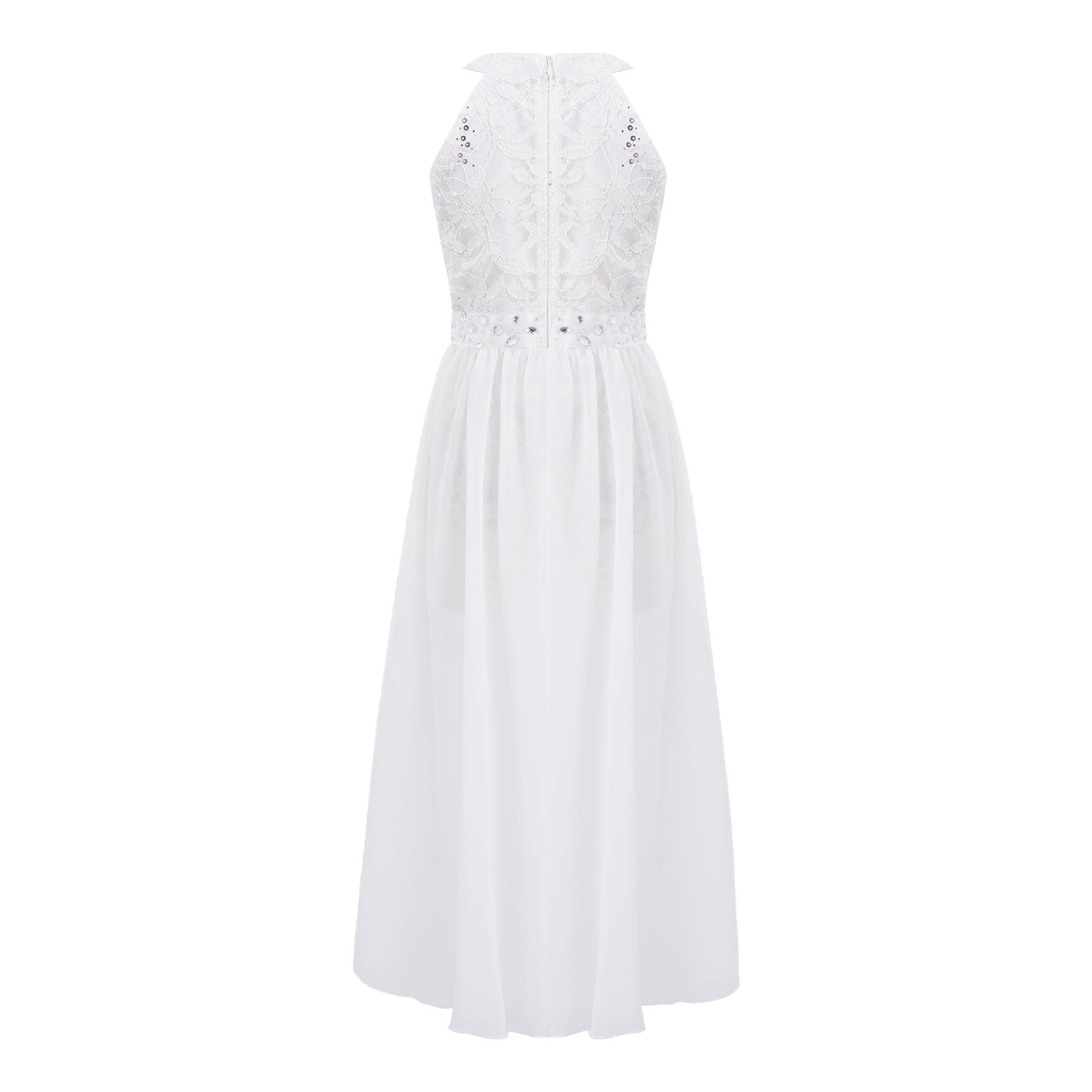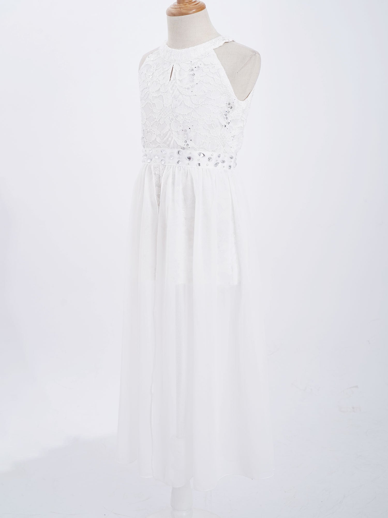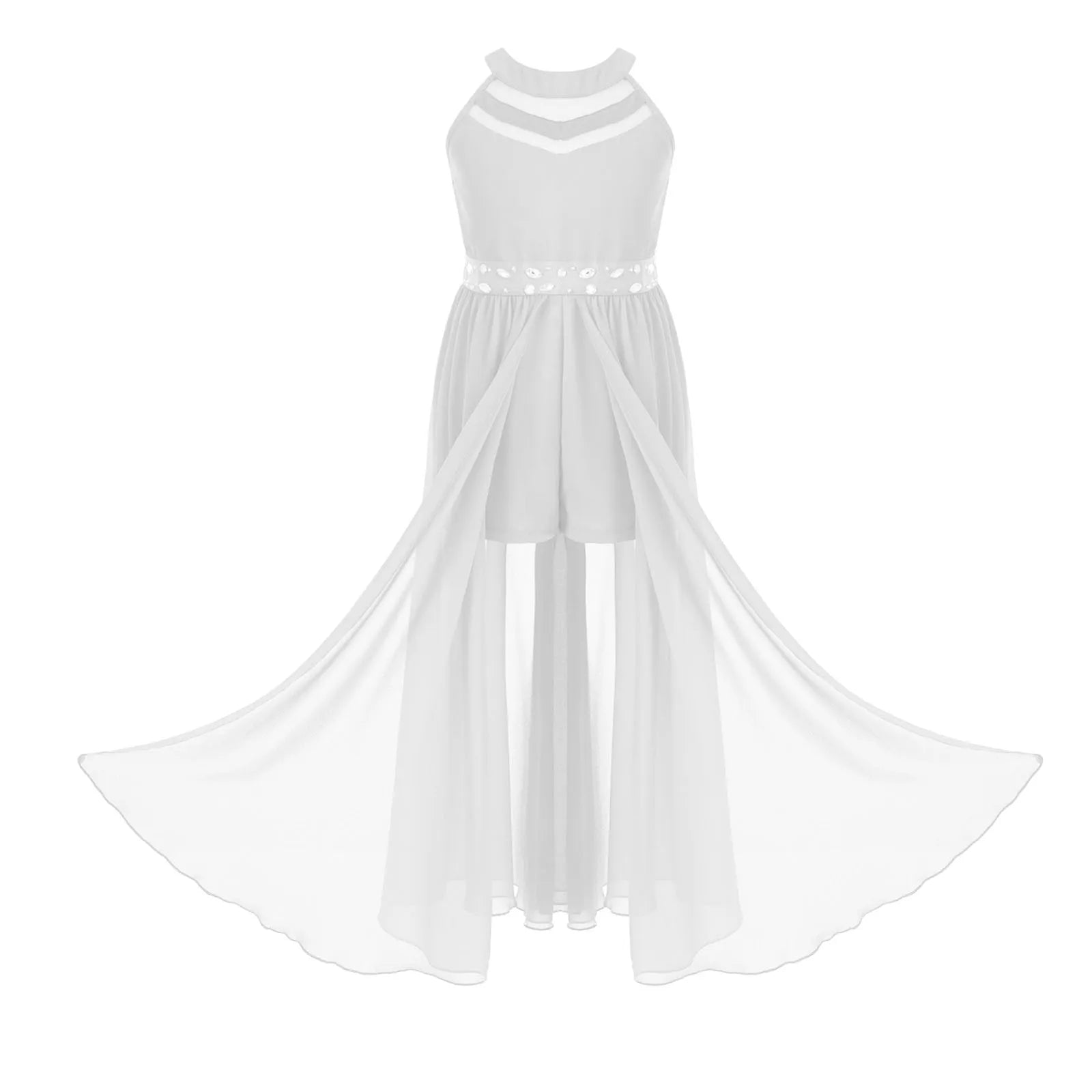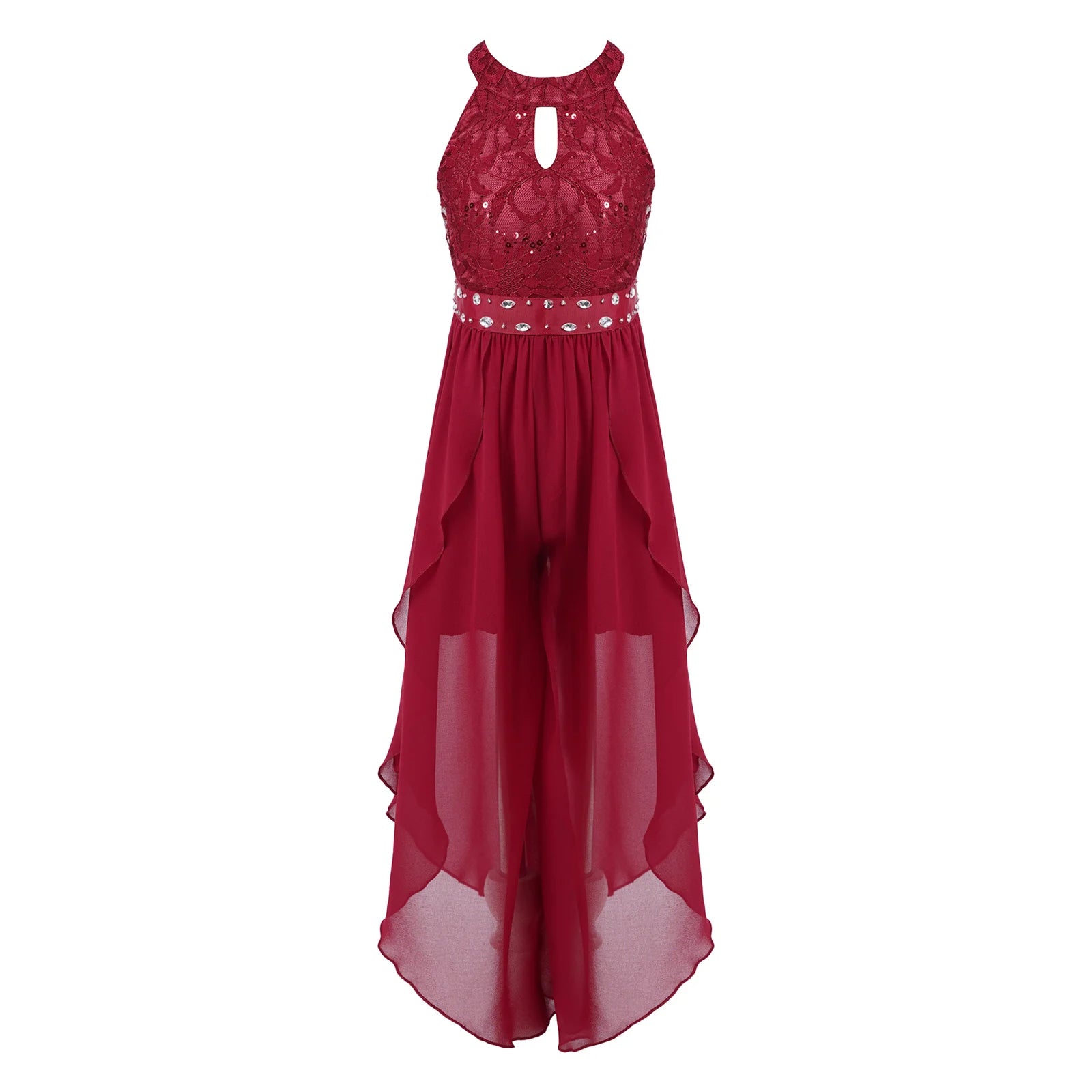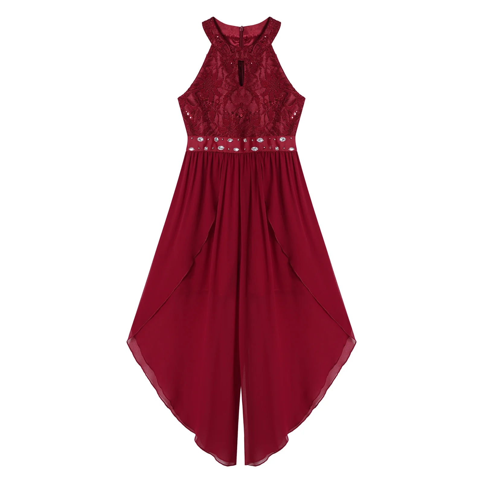 Children's Girls Maxi Romper Dress Sleeveless Floral Lace Rhinestone vestidos Kids Performance Dance Dress Girls Summer Dress