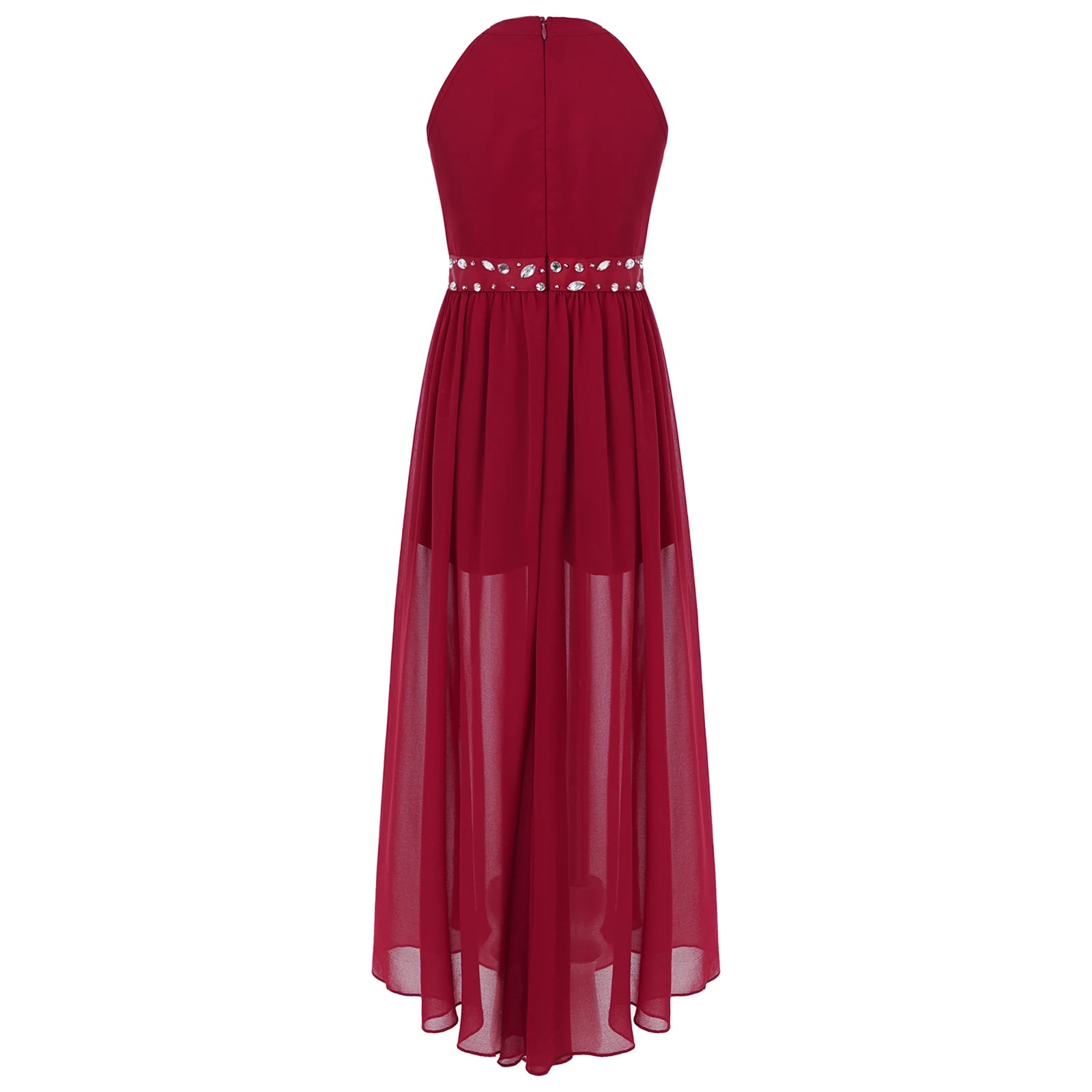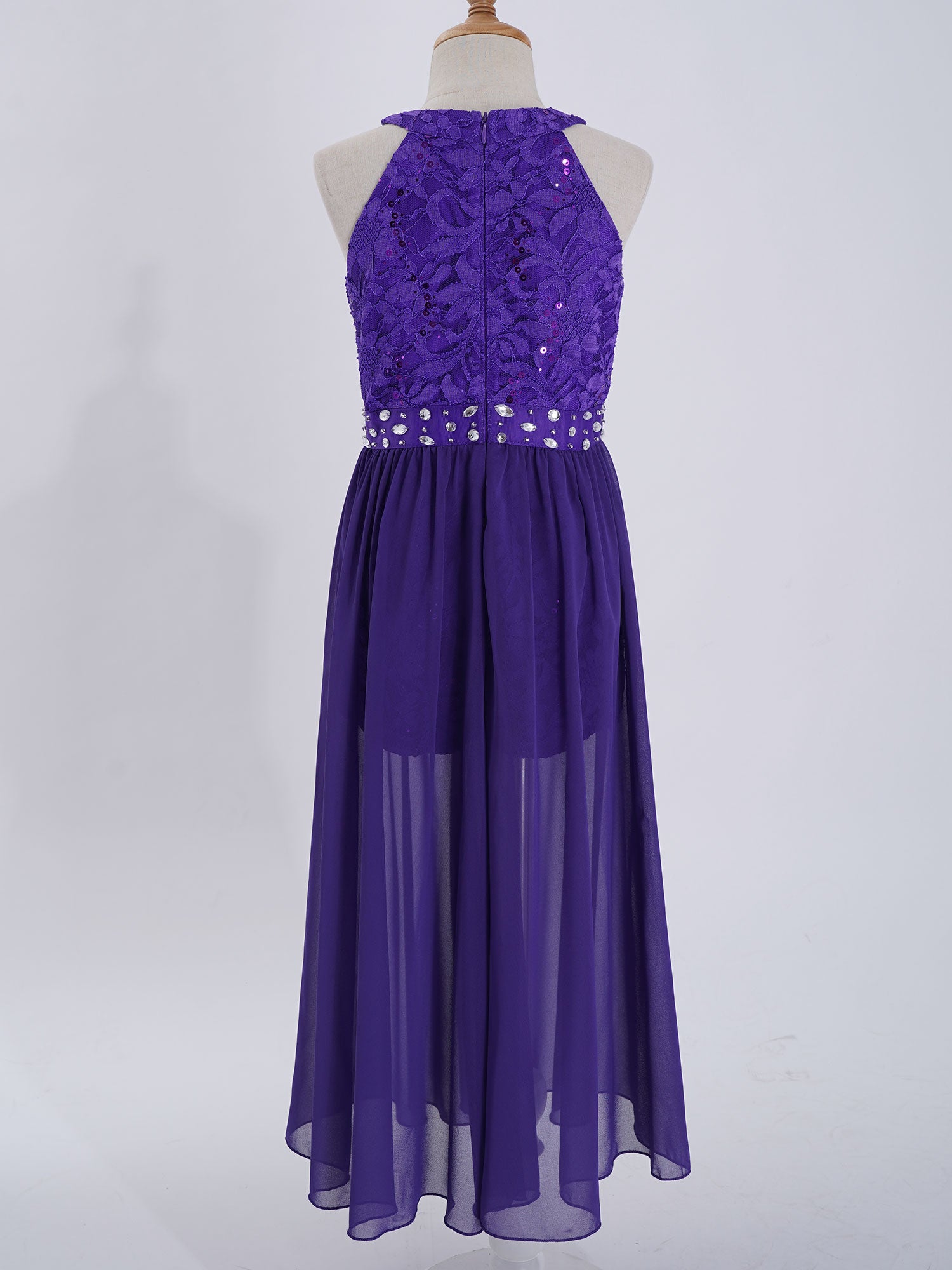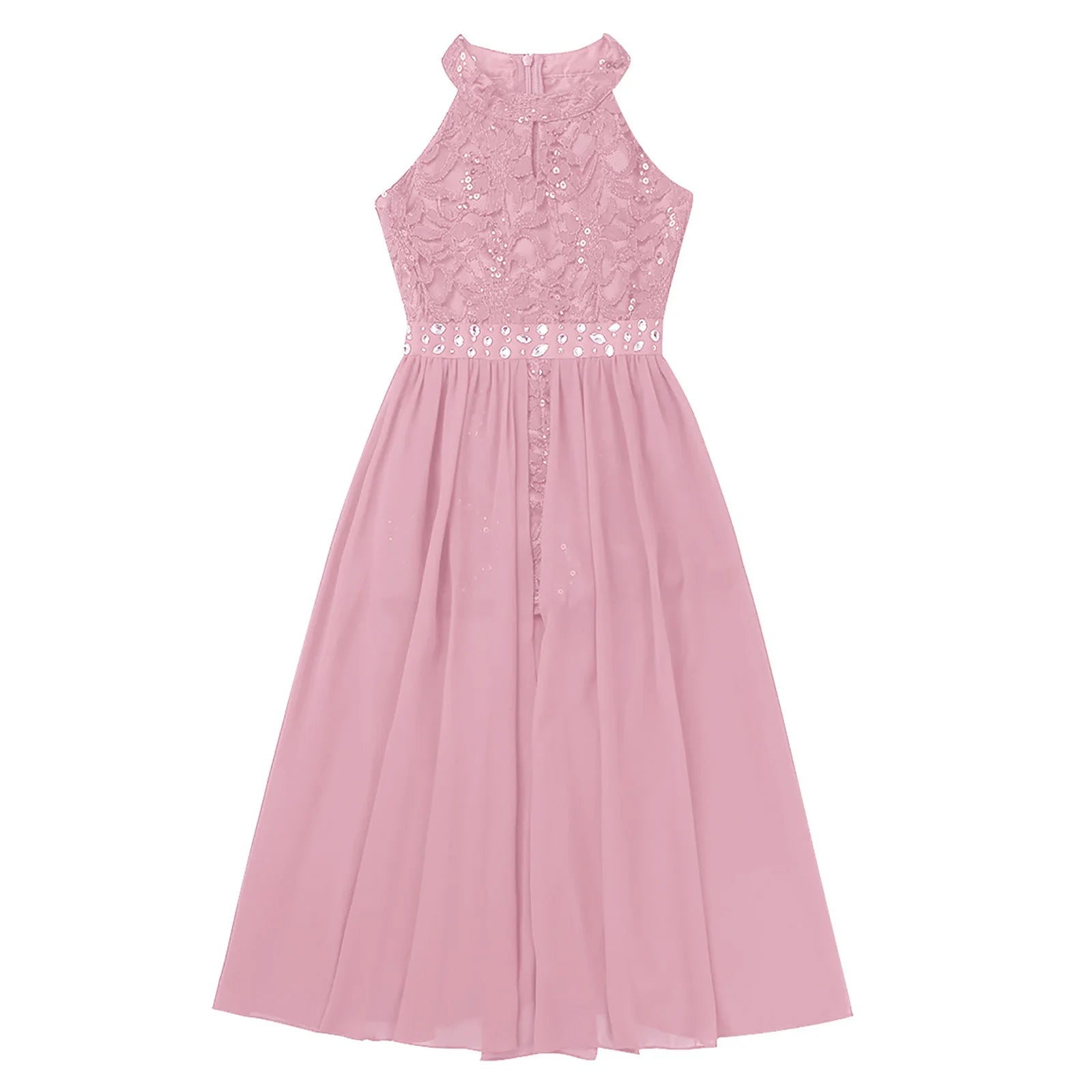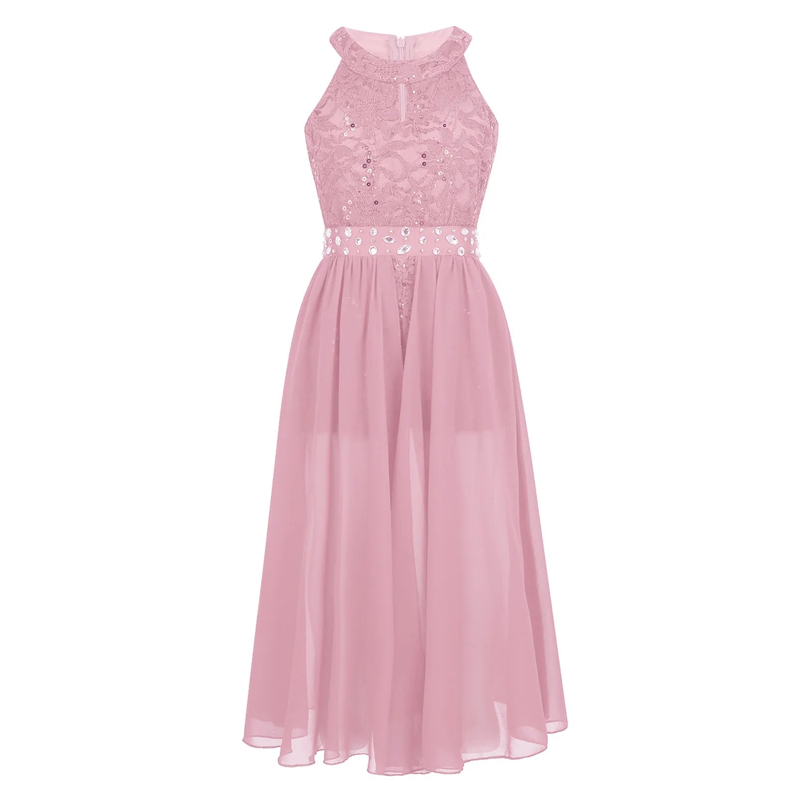 Children's Girls Maxi Romper Dress Sleeveless Floral Lace Rhinestone vestidos Kids Performance Dance Dress Girls Summer Dress