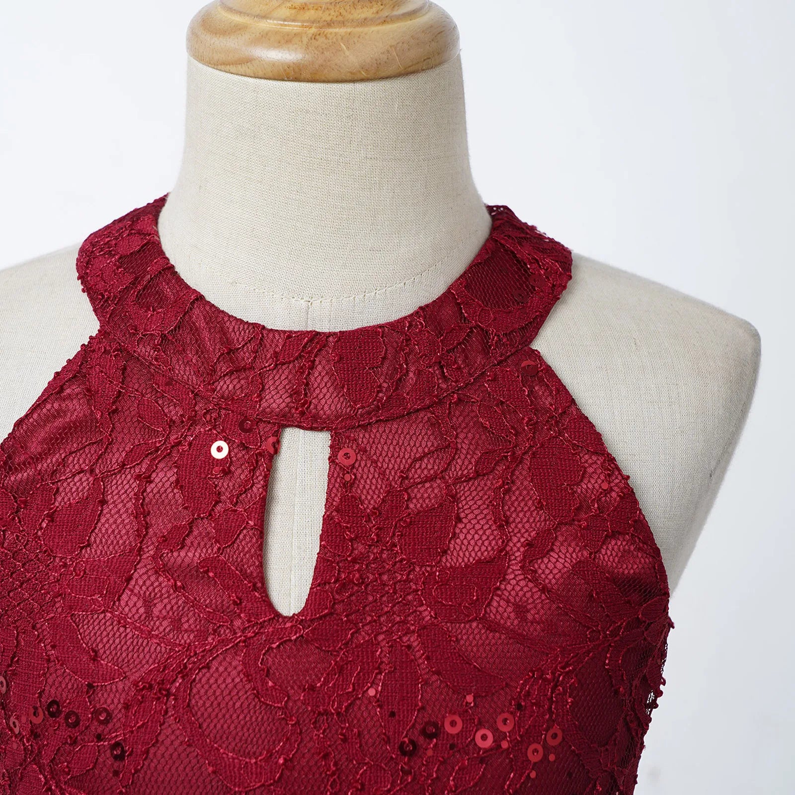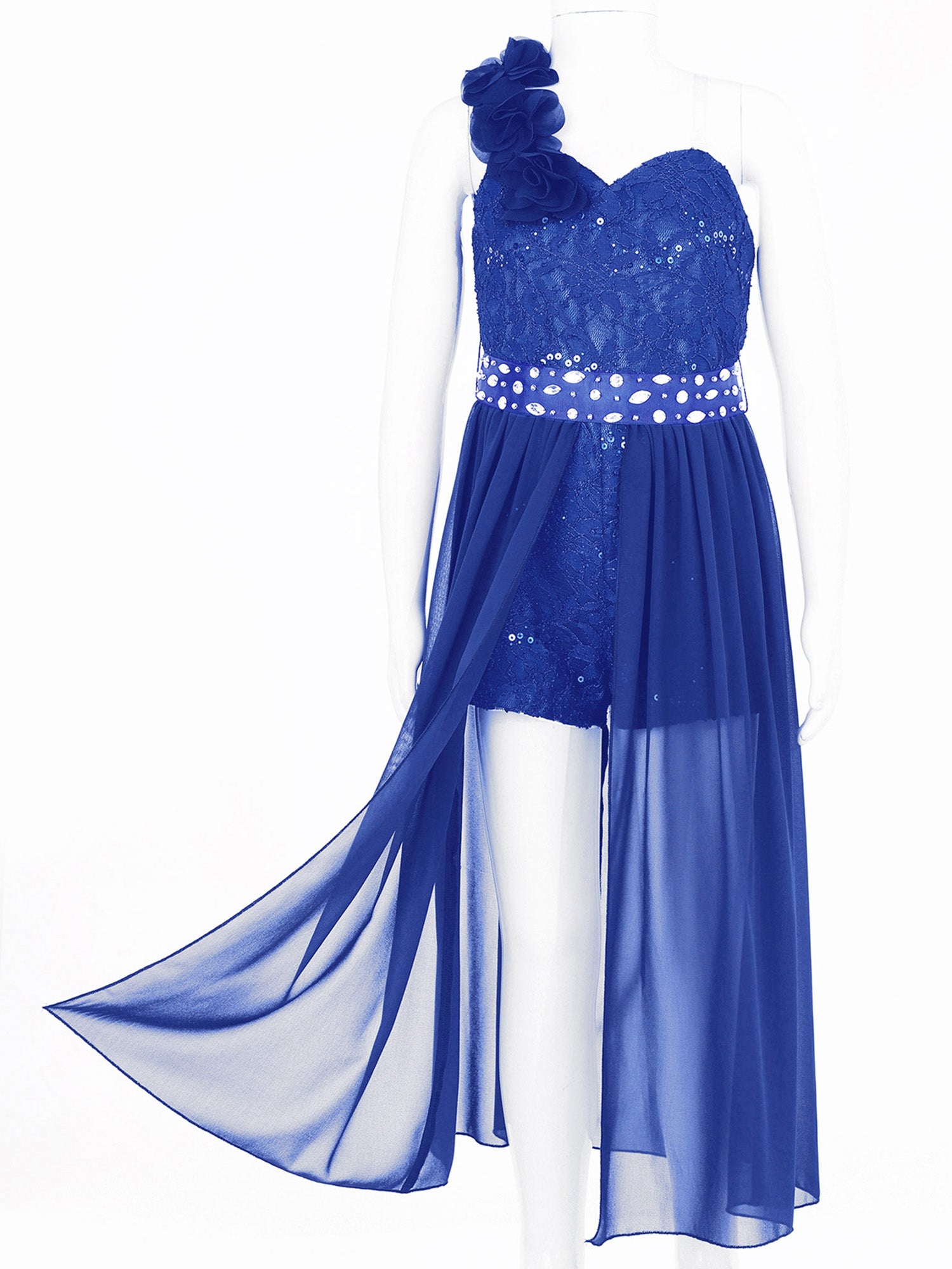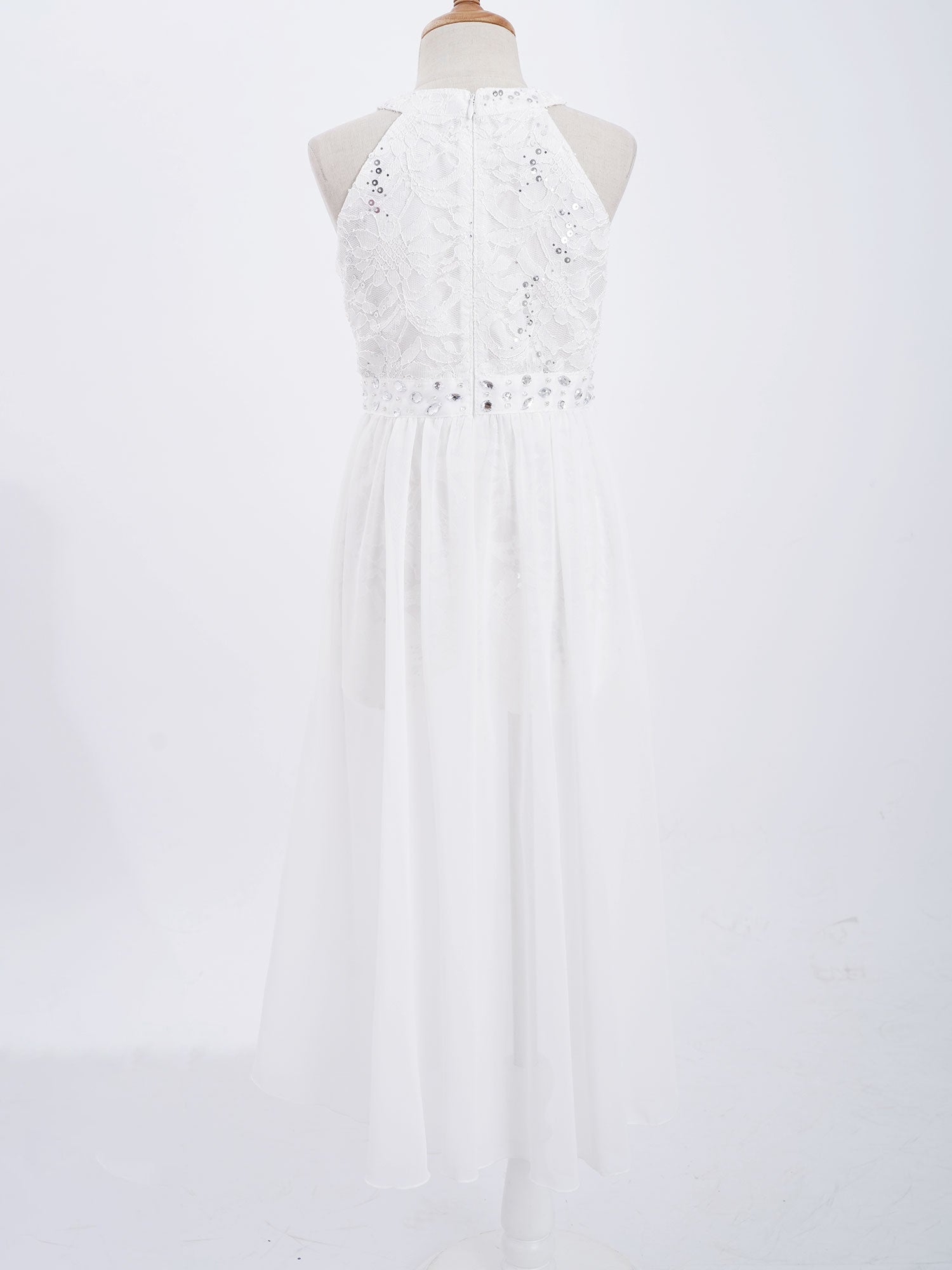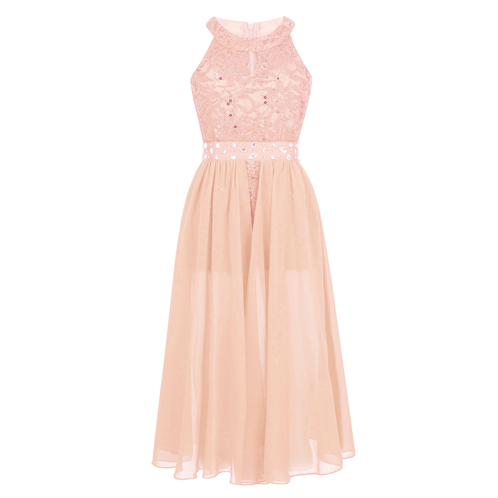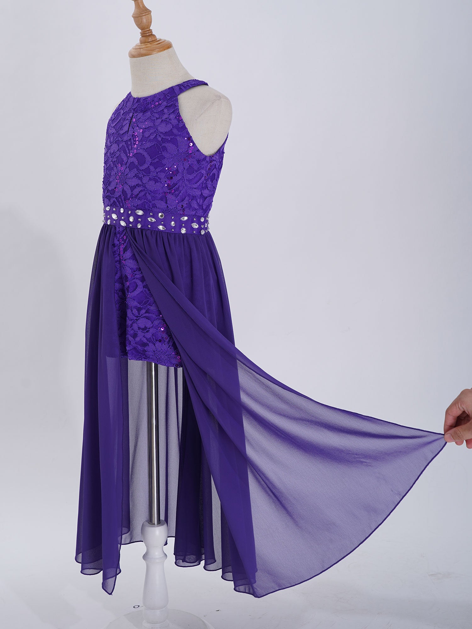 Children's Girls Maxi Romper Dress Sleeveless Floral Lace Rhinestone vestidos Kids Performance Dance Dress Girls Summer Dress