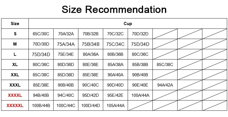 Suitable size: A Cup, B cup, C cup, D cup, E cup, F cup