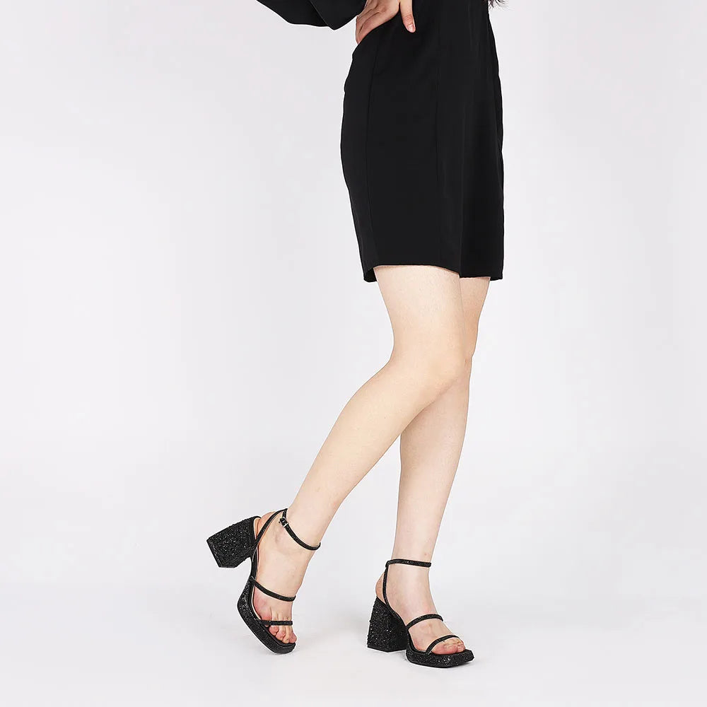 GIGIFOX Shiny Crystals Women Sandals Platform Chunky High Heel Ankle Strap Buckle Strap Shoes Sexy Elegant Dress Party Sandals
