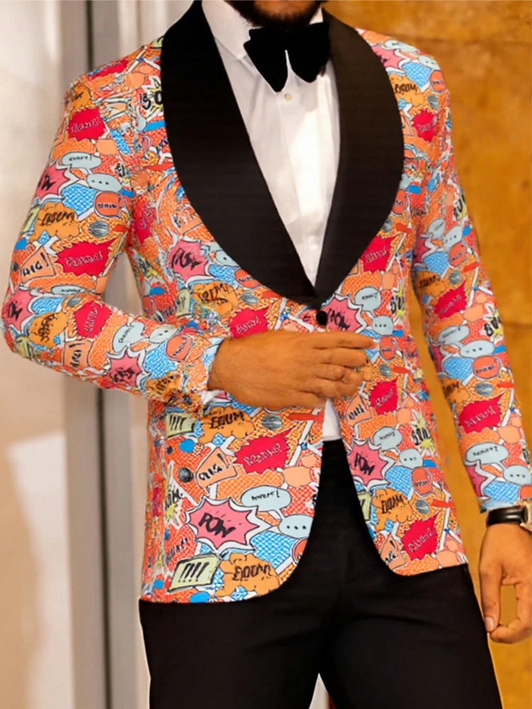 Men's patterned suit, lapel slim-fitting fashion jacket set for banquets and performances