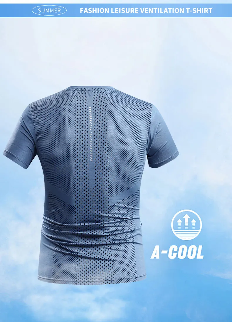 Men's Quick-Dry Running T-Shirt - Breathable Summer Sports Tee for Hiking, Fishing & Outdoor Activities - Lightweight & Elastic