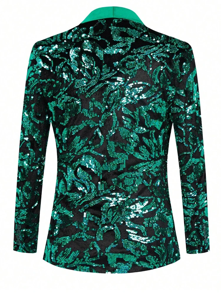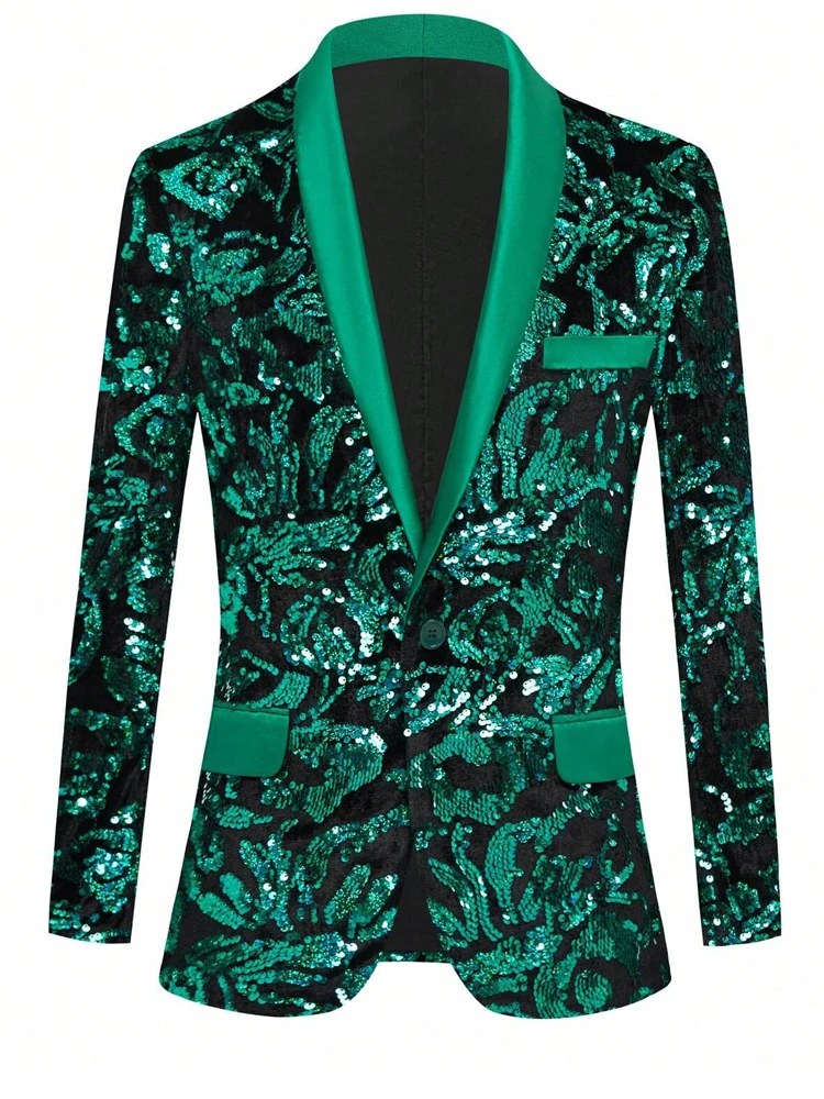 Men's single-breasted velvet tuxedo jacket, patterned suit jacket, single-button shawl lapel evening dress, ball gown, party dre