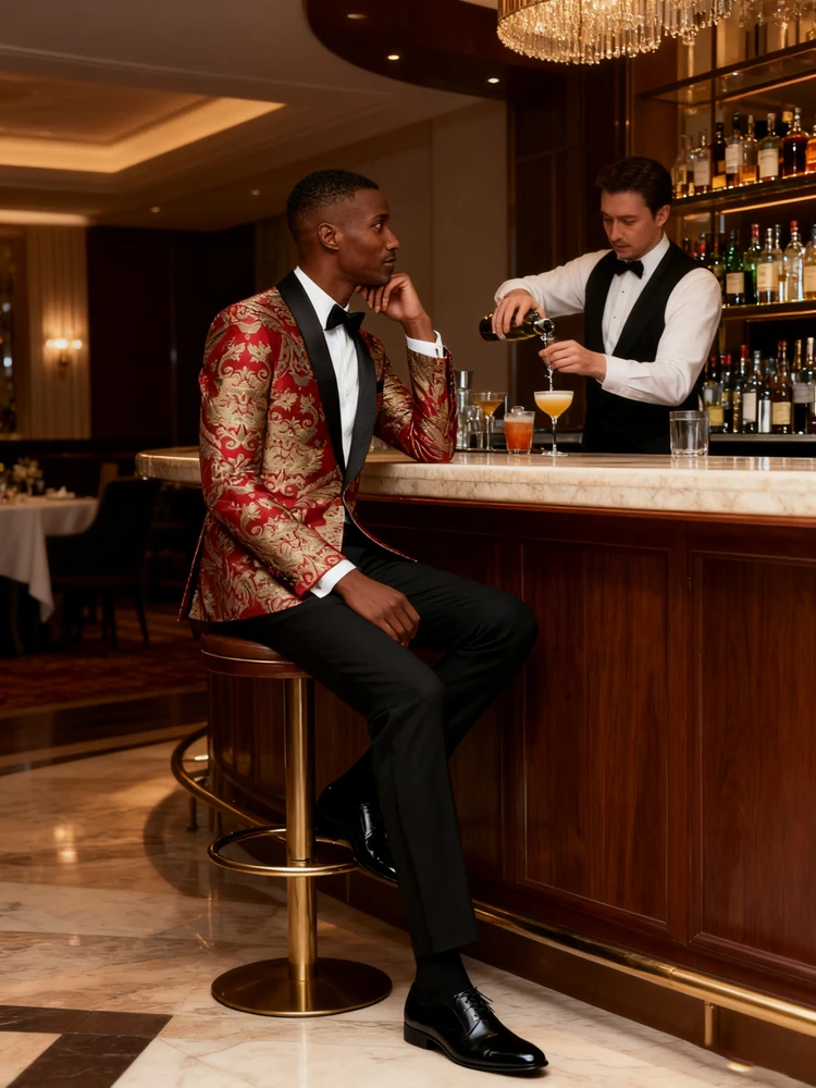 This tuxedo Jacket with elegant jacquard design, great for prom party graduation dinner formal occasion.Tailored-fit and high-quality fabric make you handsome and outstanding in crowds.