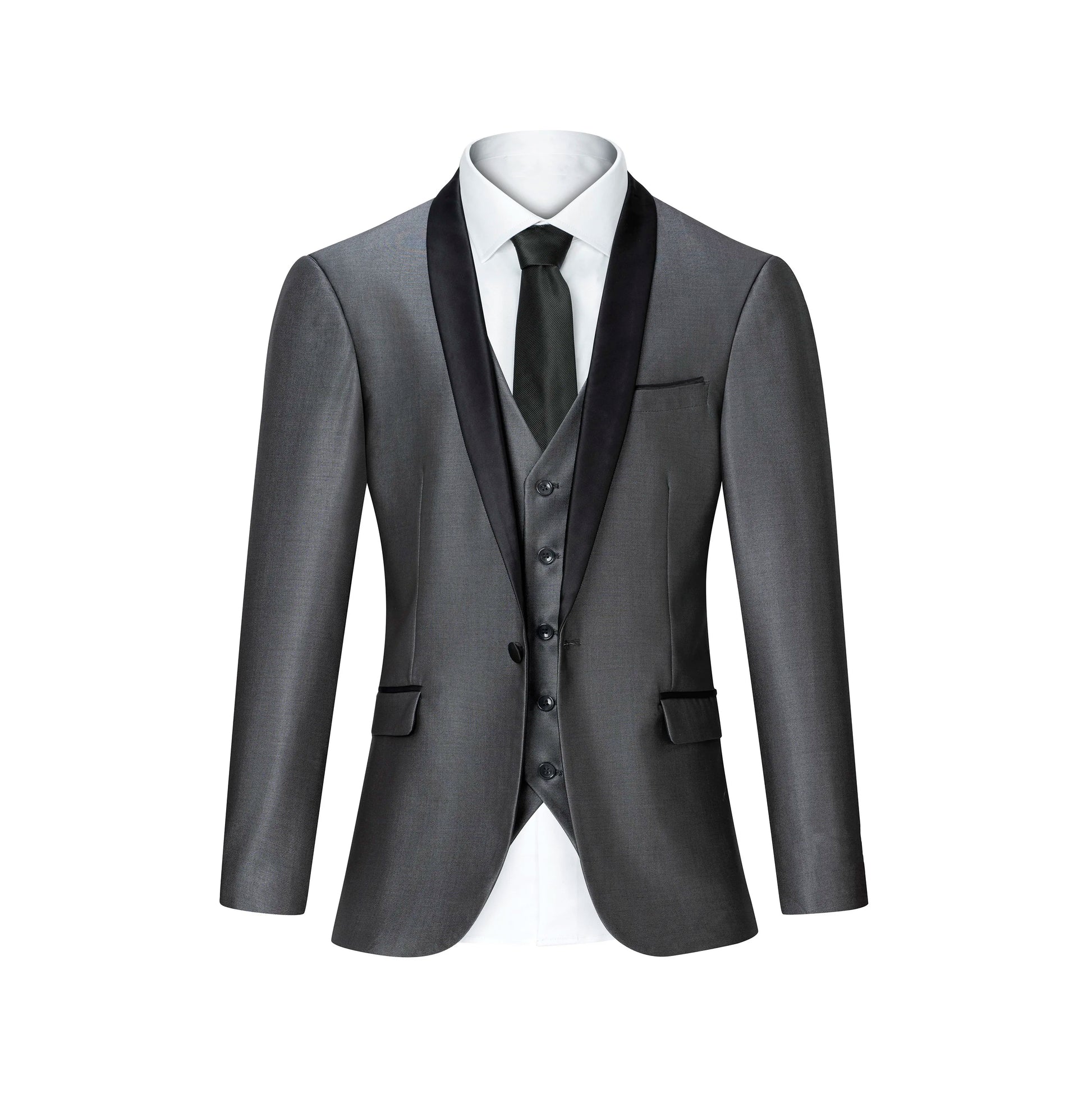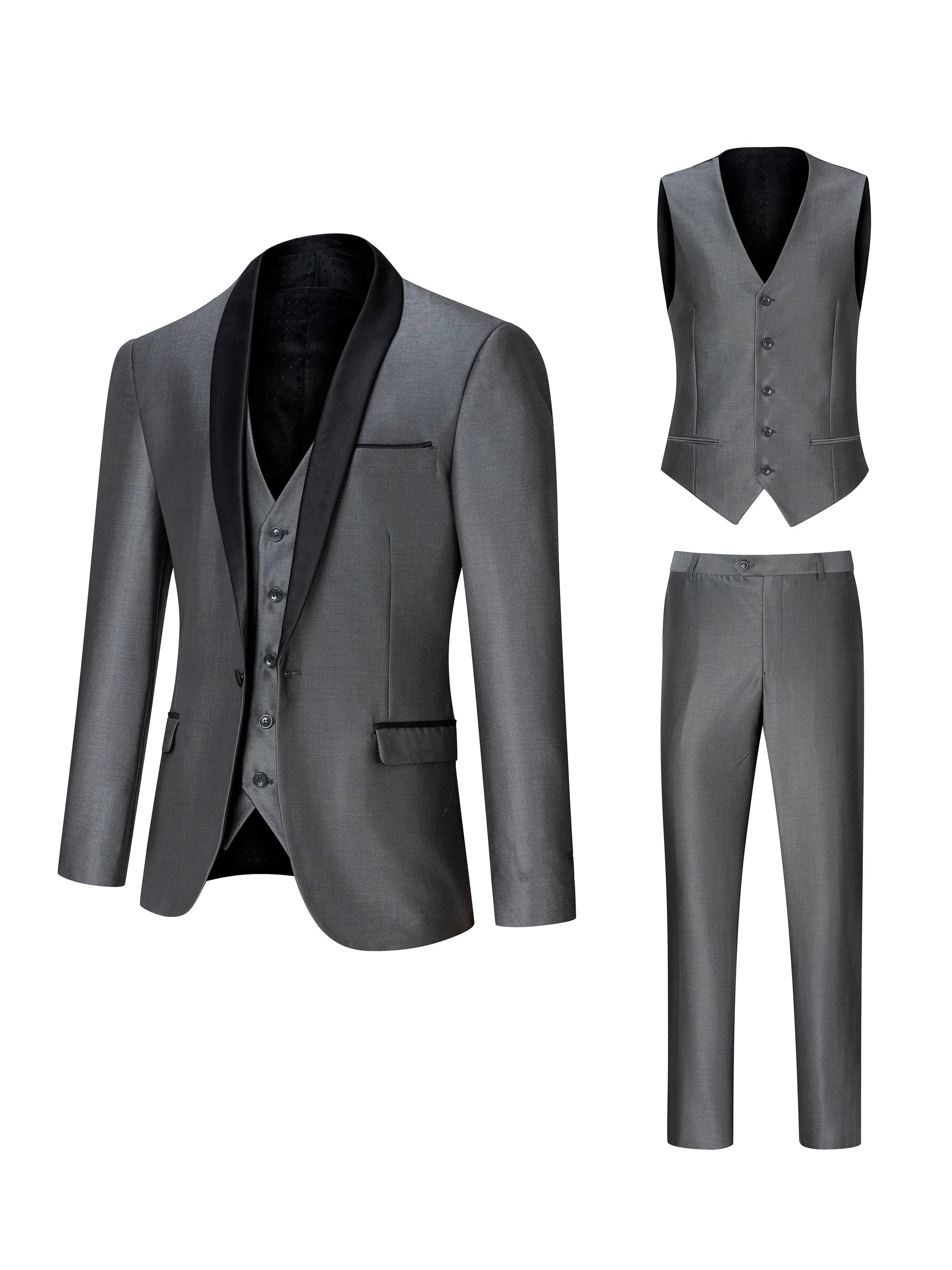 Men's White 3pcs Suit Set with Black Shawl Lapel, Single Button Formal Blazer, Vest & Trousers for Prom Wedding Dinner Busines