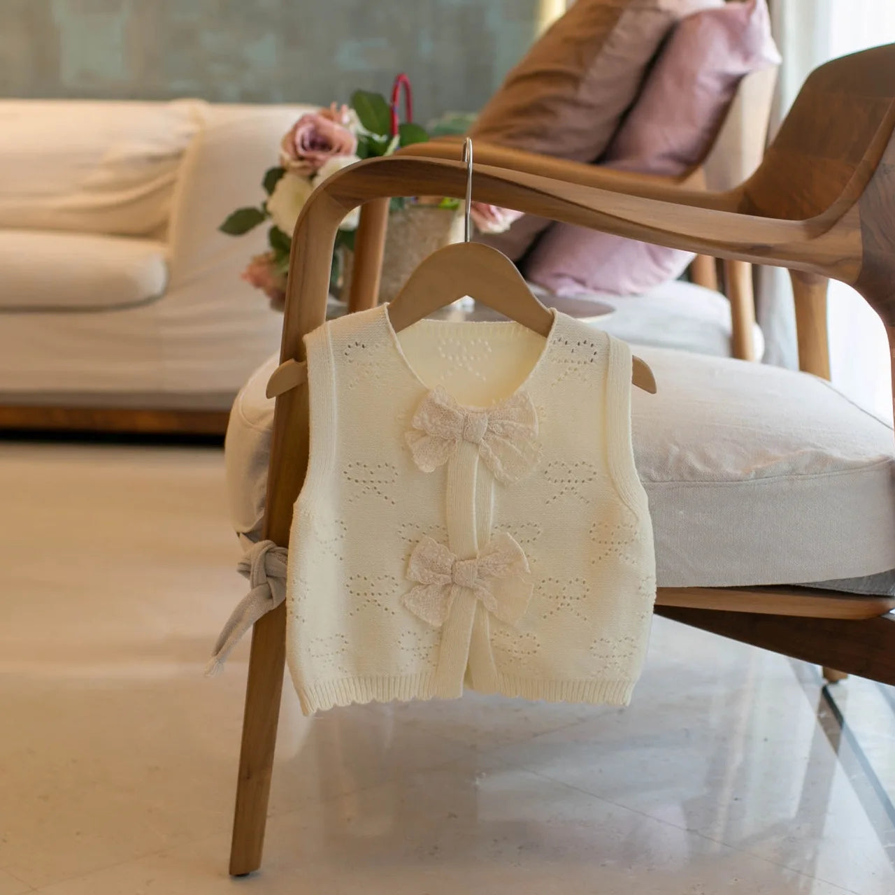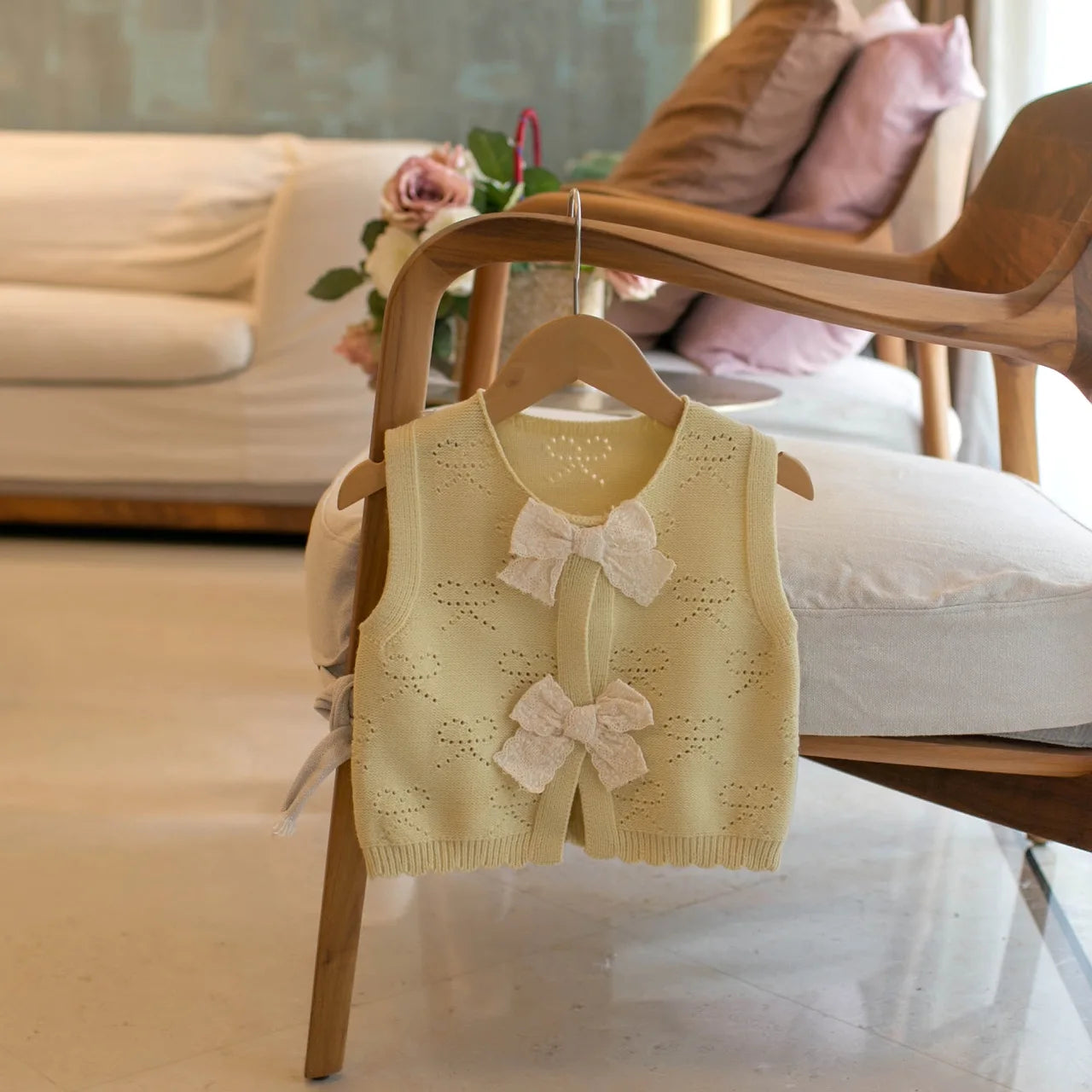 New Princess Trend Front Butterfly-knot Thin Knit Vest Sweater Super Nice Round Neck Sleeveless Girl Waistcoat Chic Tops IY06161