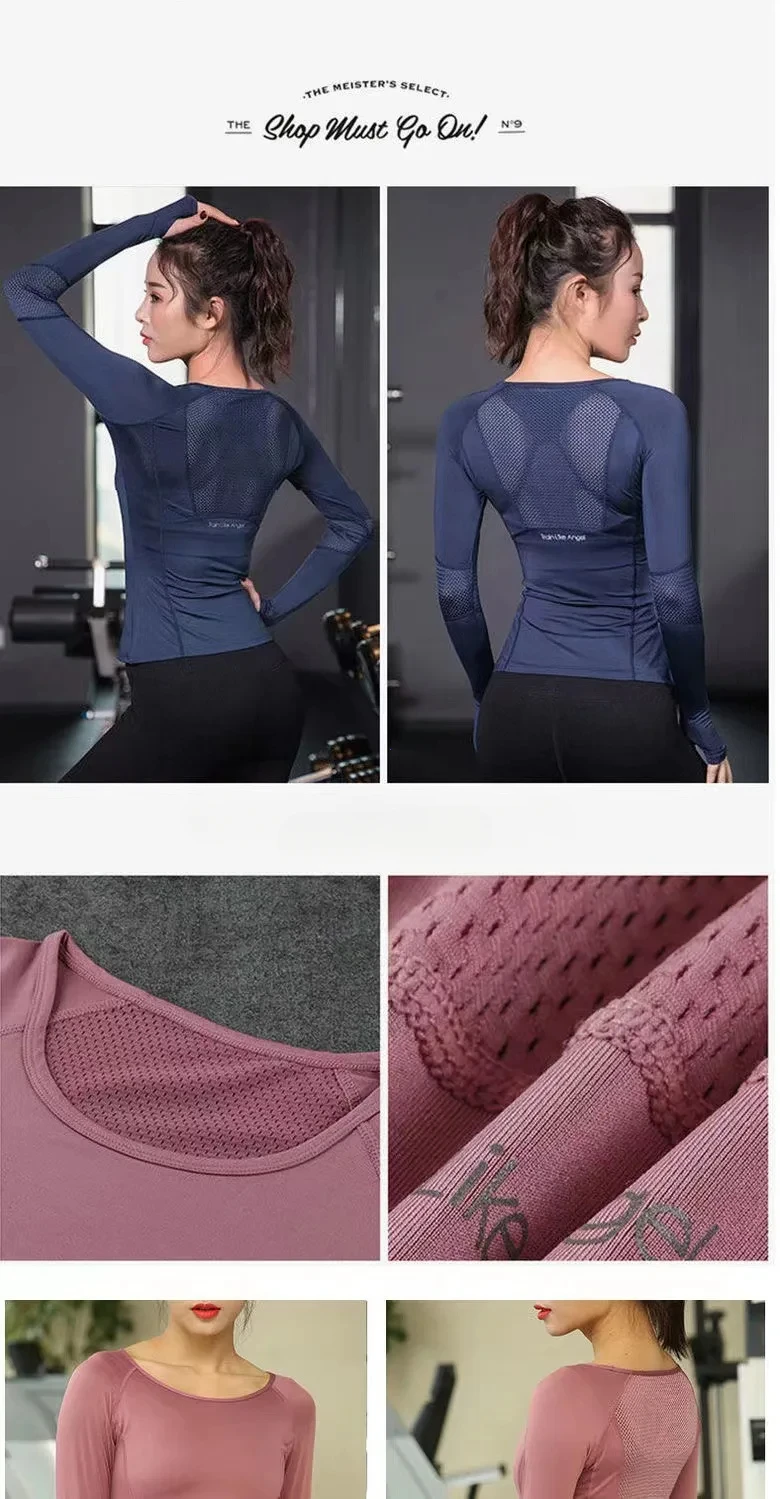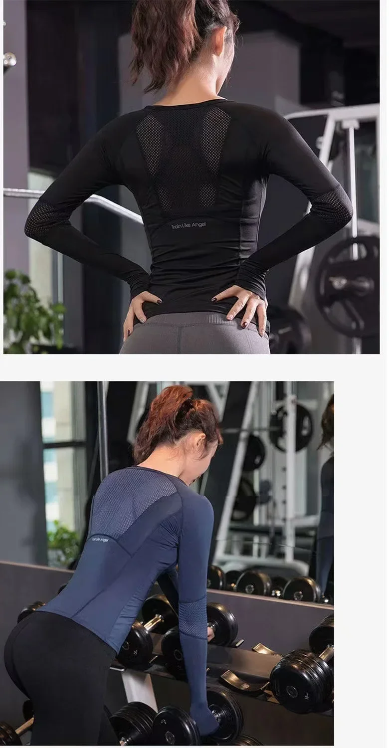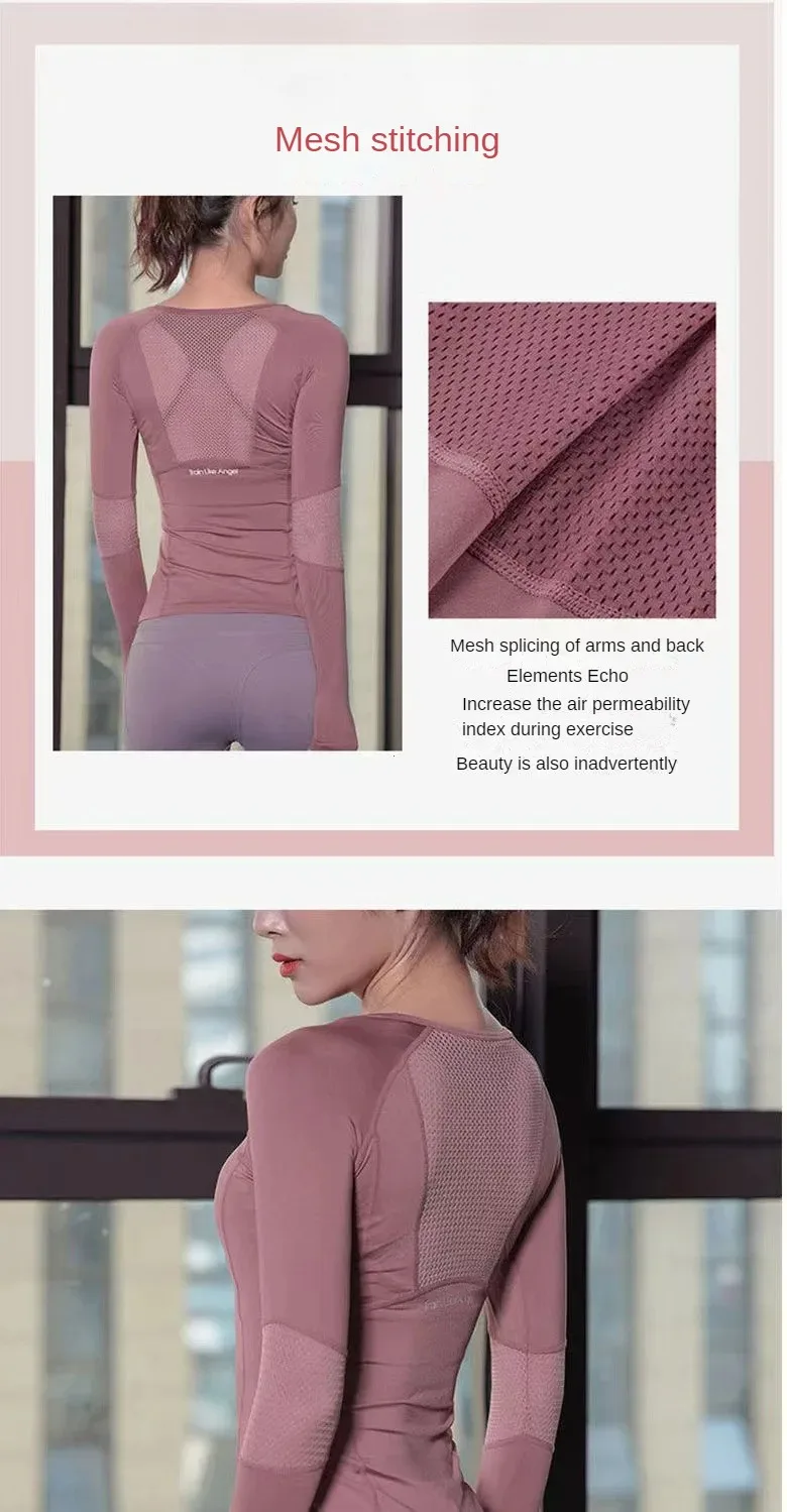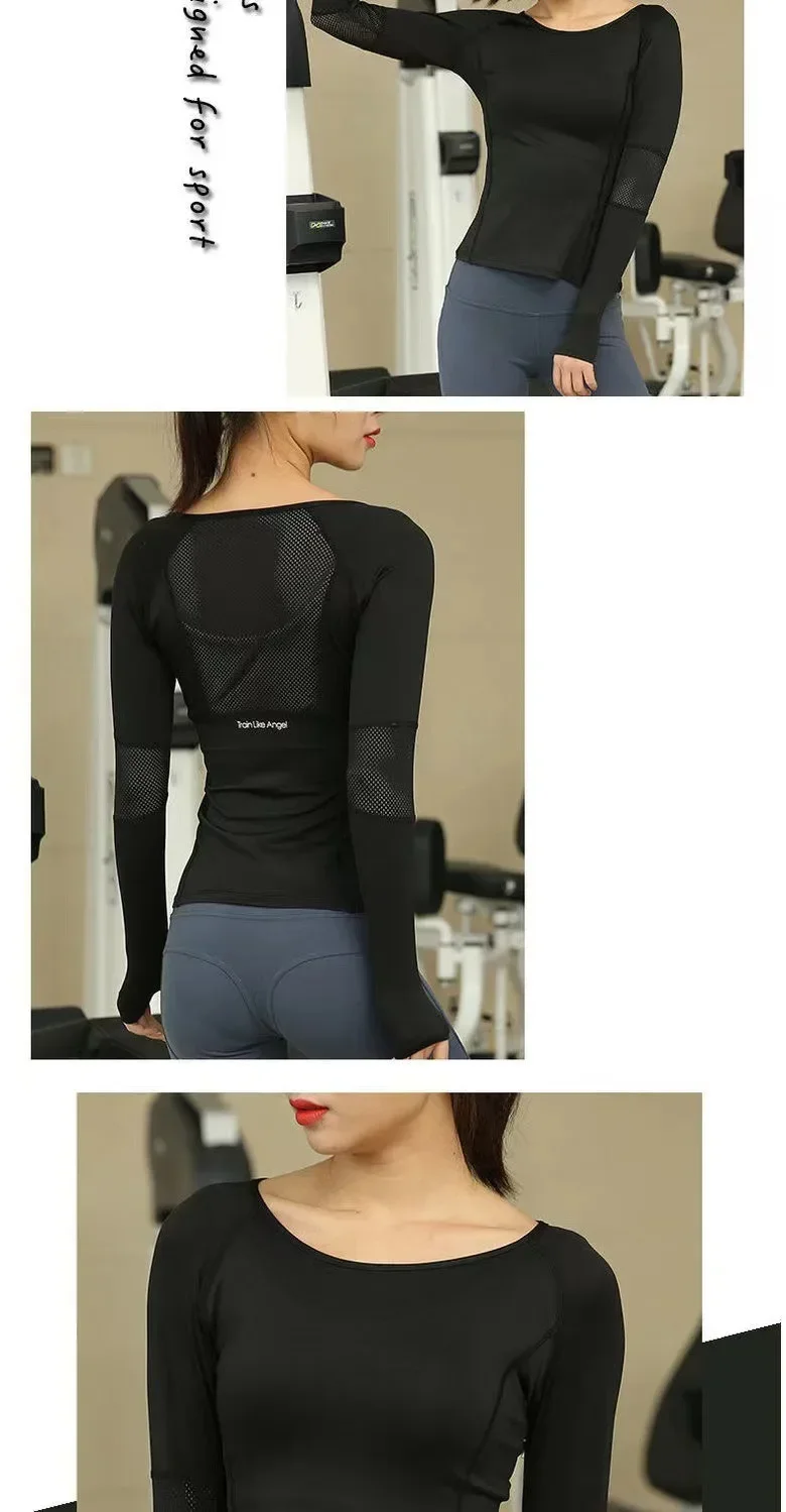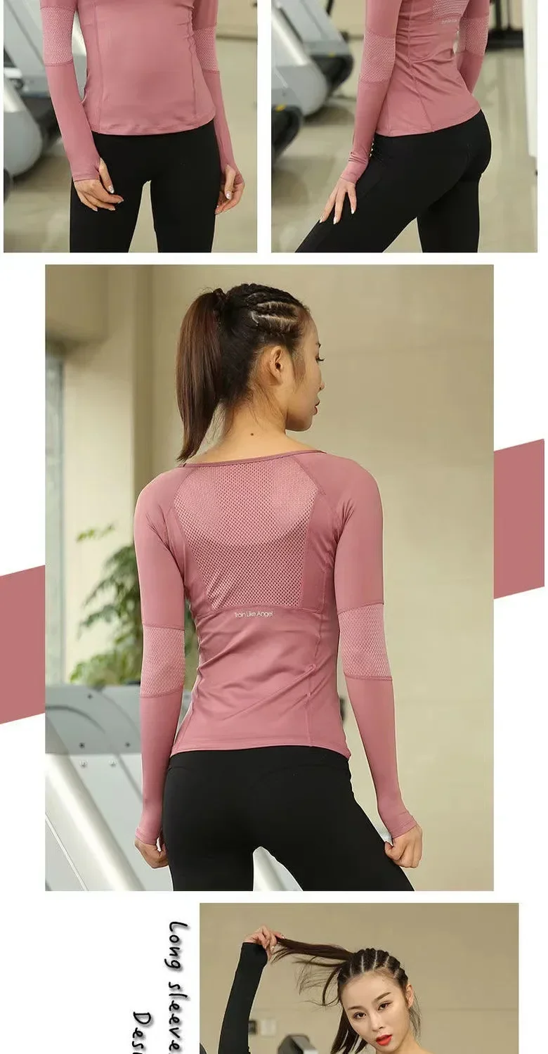 Quick Drying Fitness Top Women Sportwear Running Exercise Long Sleeved T-shirt Finger Sleeve Training Top