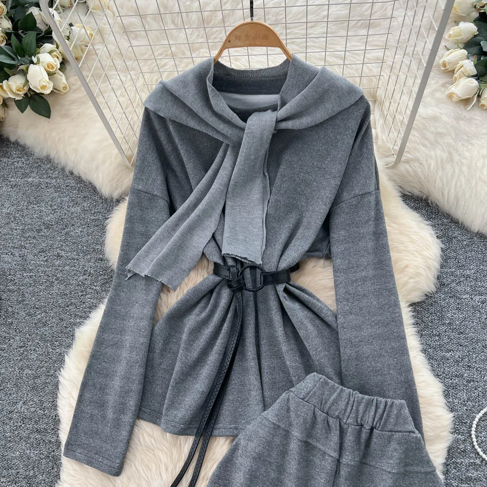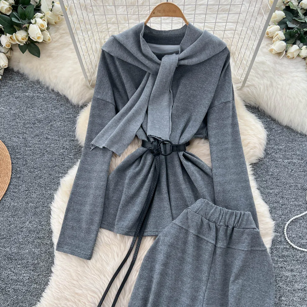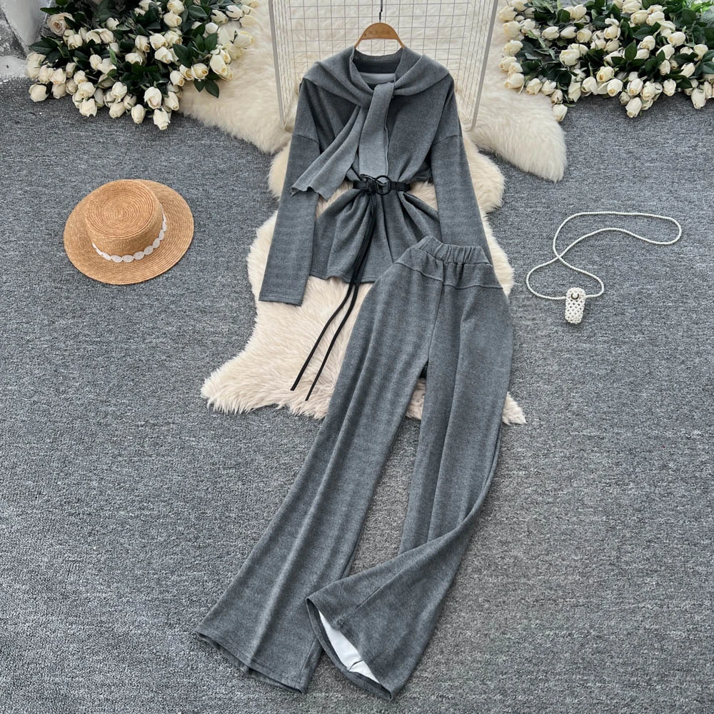 SINGREINY Autumn Sweatshirt Two Pieces Sets 2025 Feamle Scarf Neck Long Sleeves Hoodies+Elastic Long Pants Casual Homewear Suits
