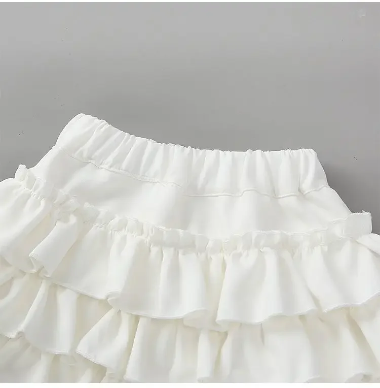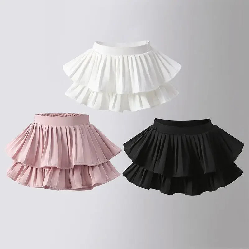 Summer Baby Girls Cake Skirts Solid Elastic Waist Children Girl Pleated Skirts High Quality Preppy Style Junior Girl Dance Skirt