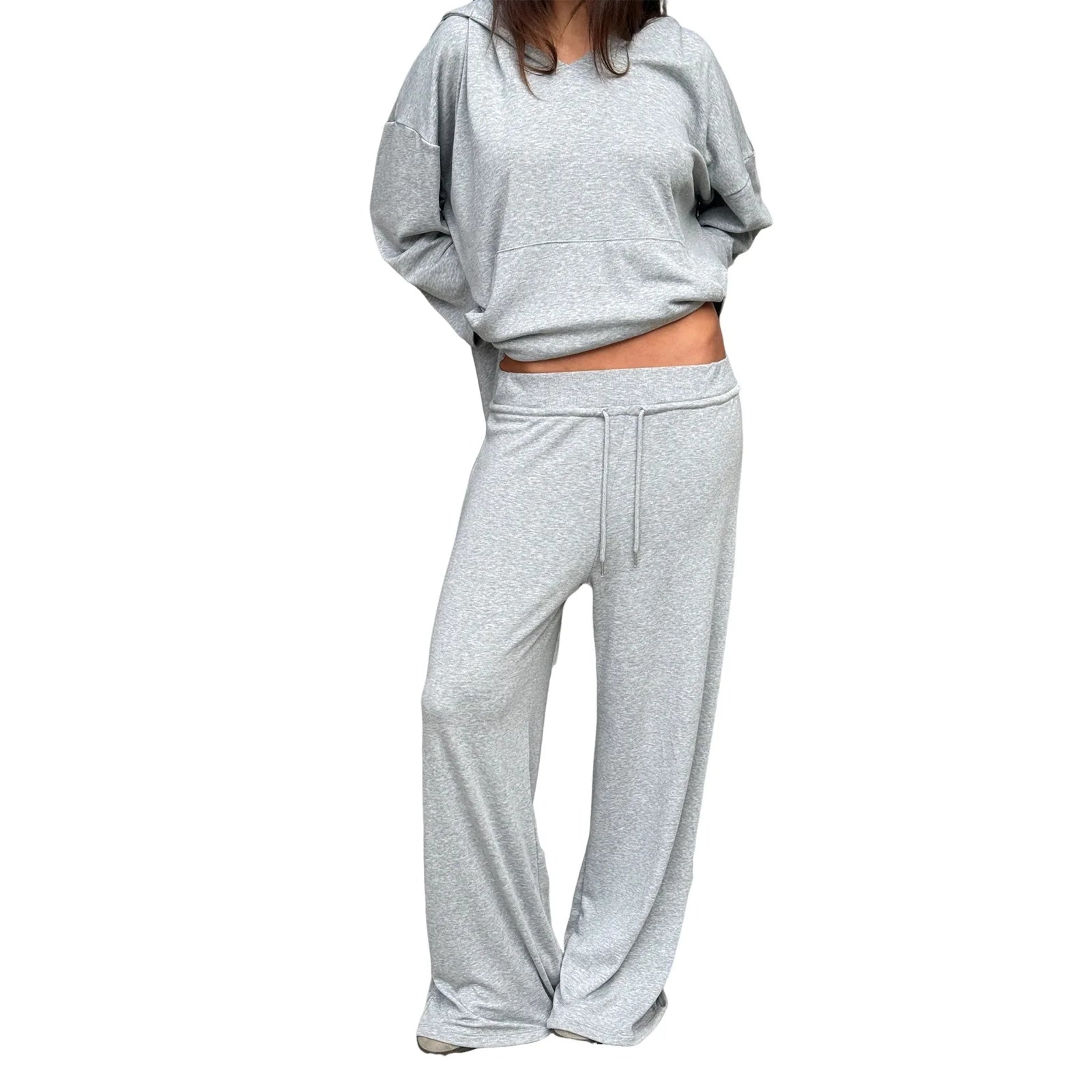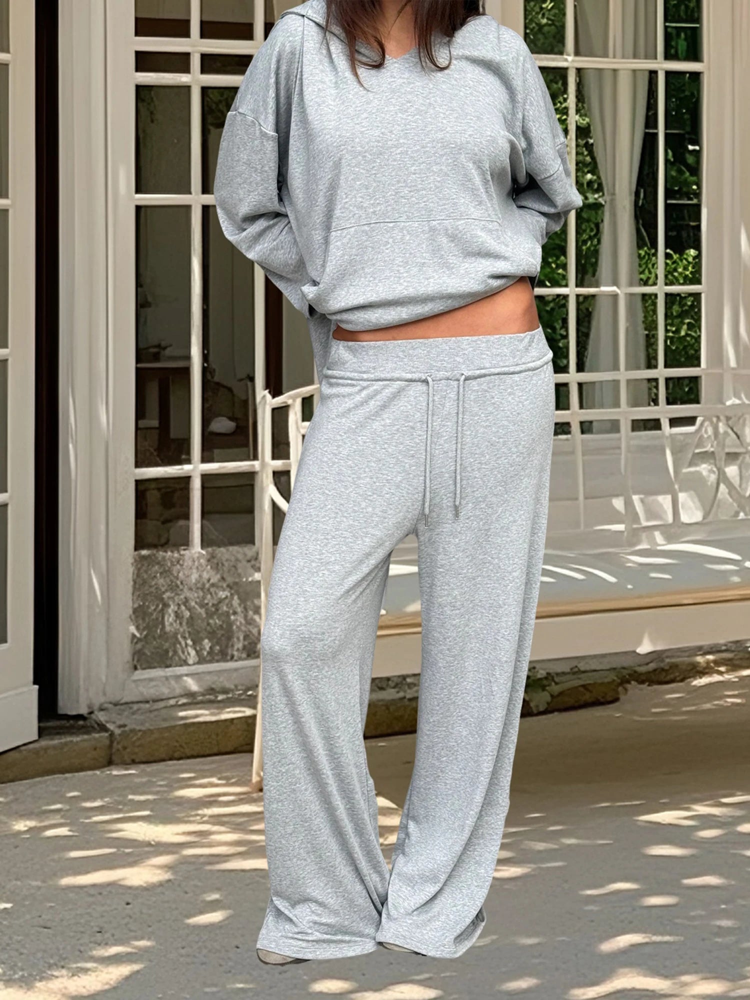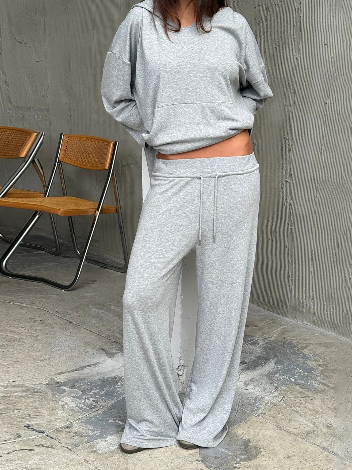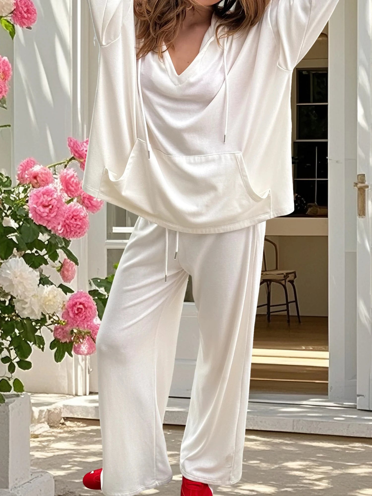 Women s Two-Piece Outfit Long Sleeve Hoodie and Pants Set in Solid Color with Convenient Pockets for Activewear