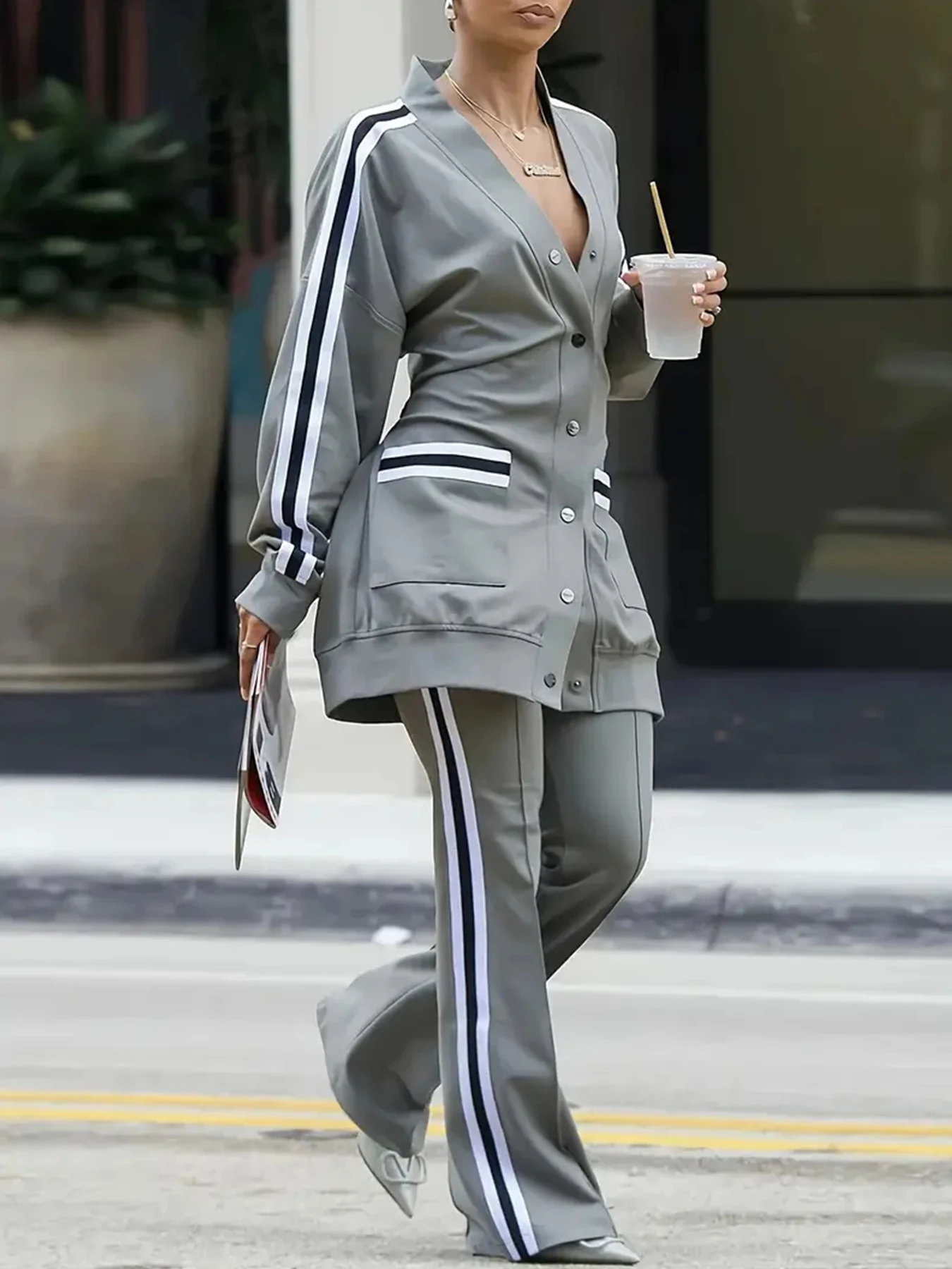 Women's New Versatile Fashion Side Stripe Casual Two-Piece Suit