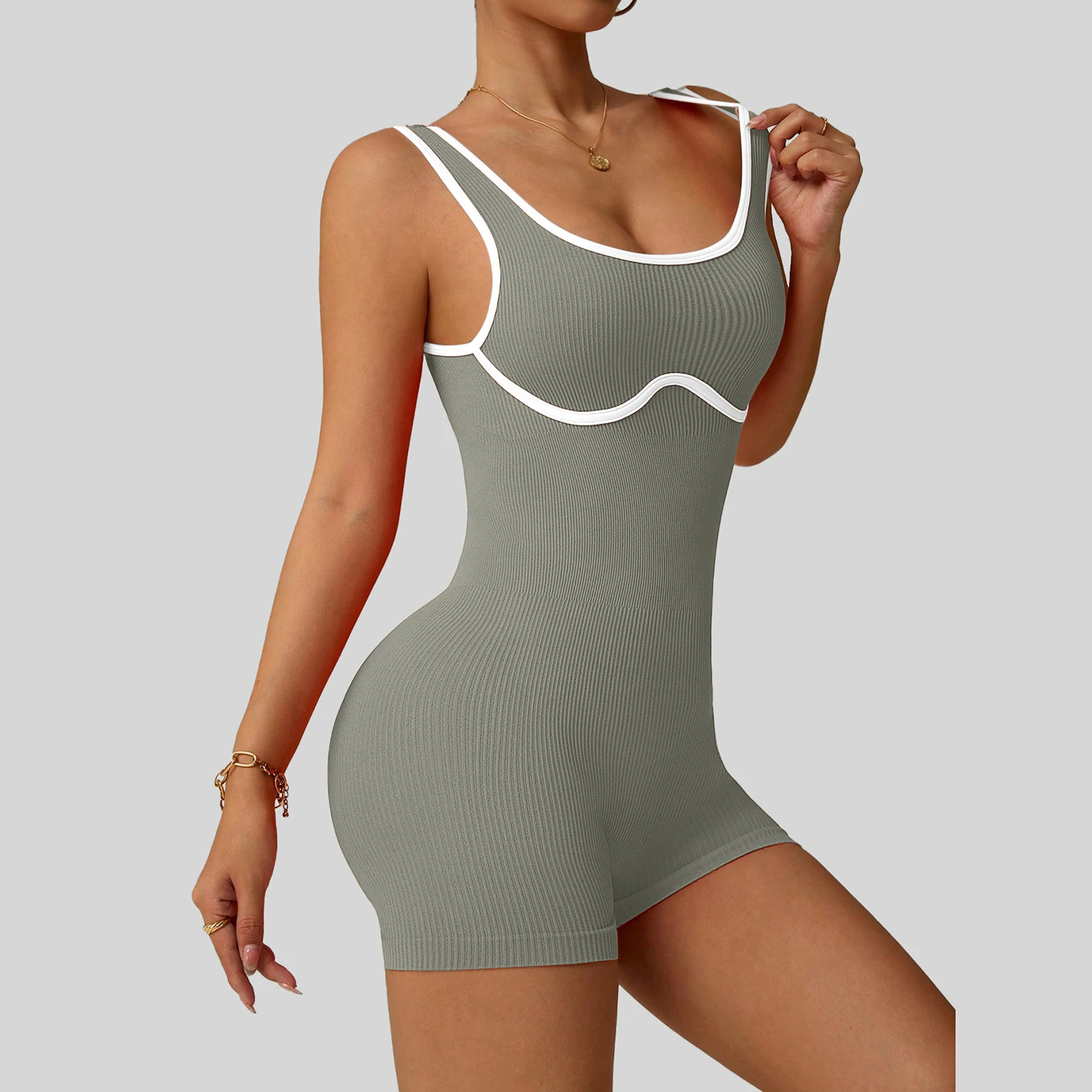 Women's Shockproof Color Block Yoga Bodysuit Seamless Sculpting High-Impact Workout Tight Gym Fitness Activewear Breathable yoga