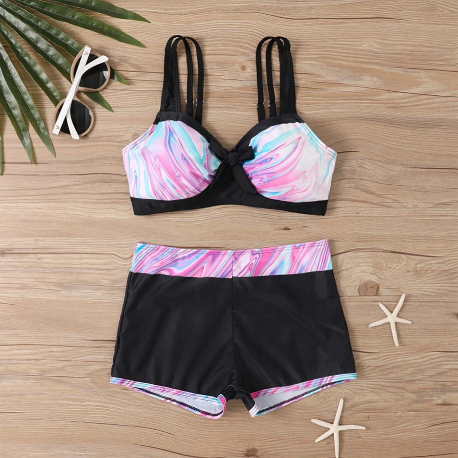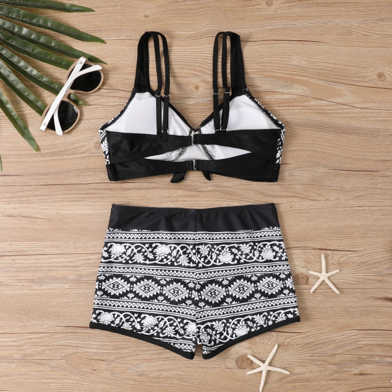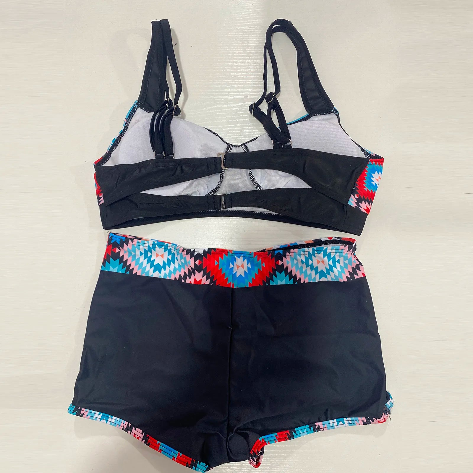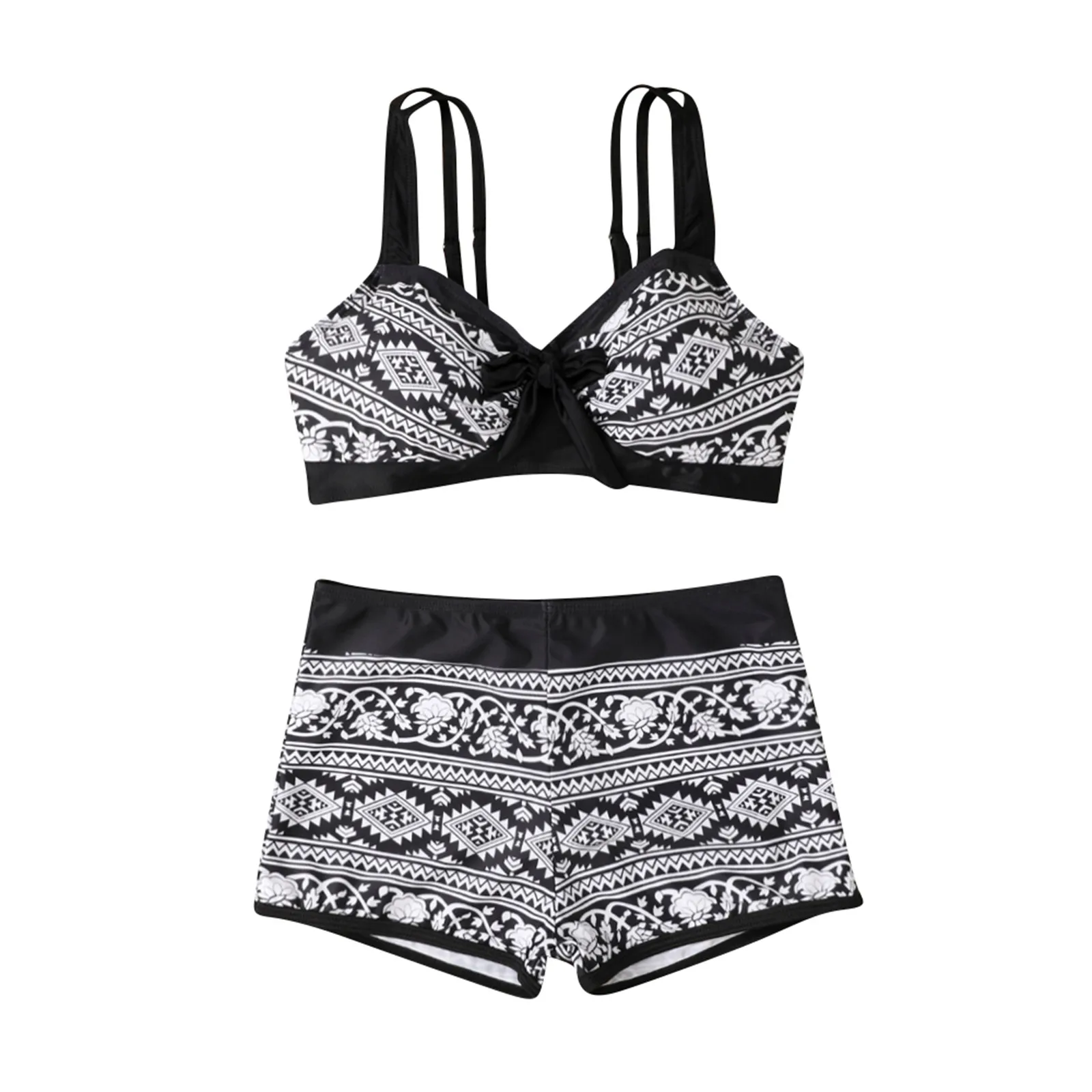 Womens Swimsuits Big Breast Elastic High Waisted Bikinis Sexy Push Up Two Pieces Bathing Suit Ladies Vintage Printed Biquinis
